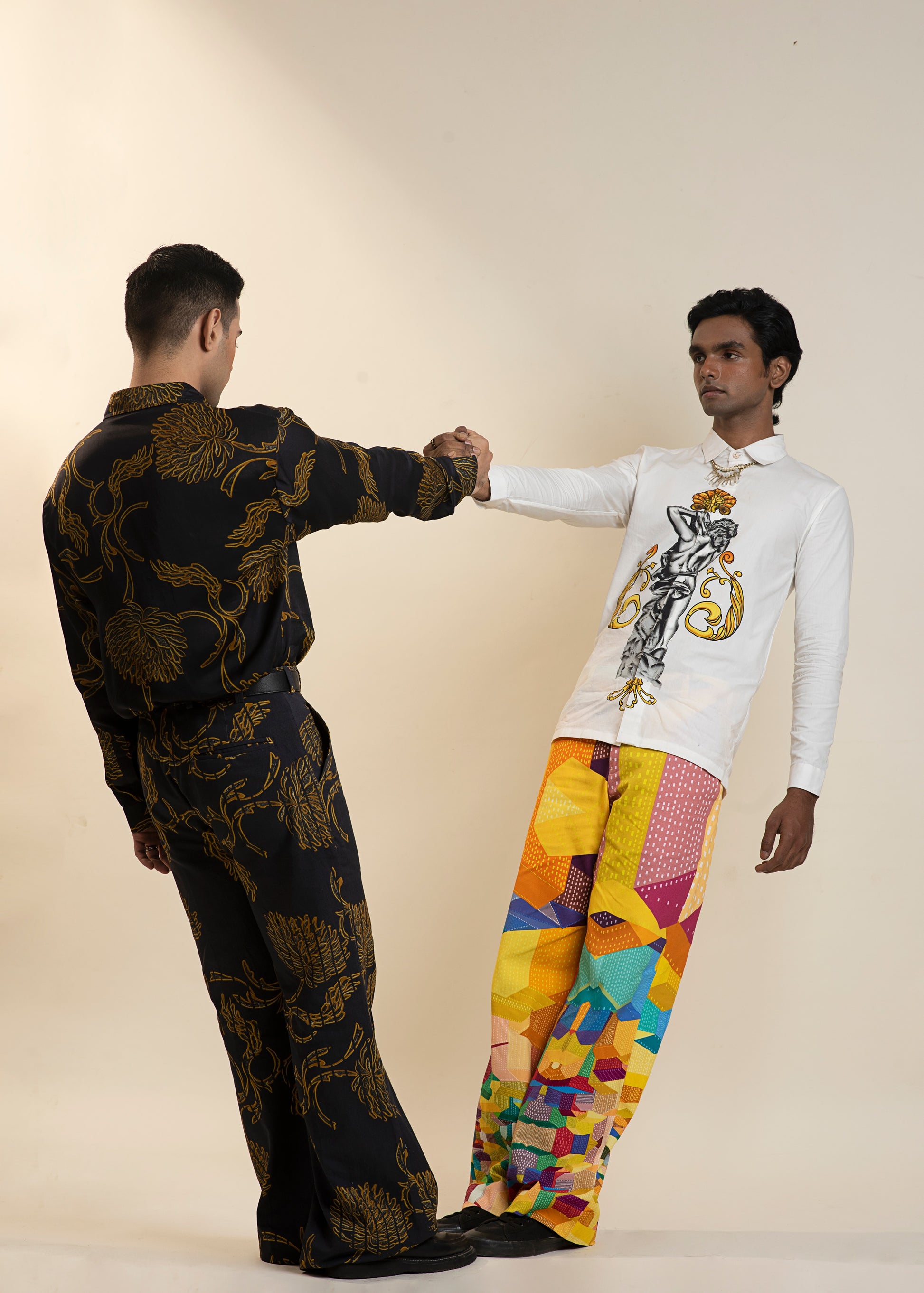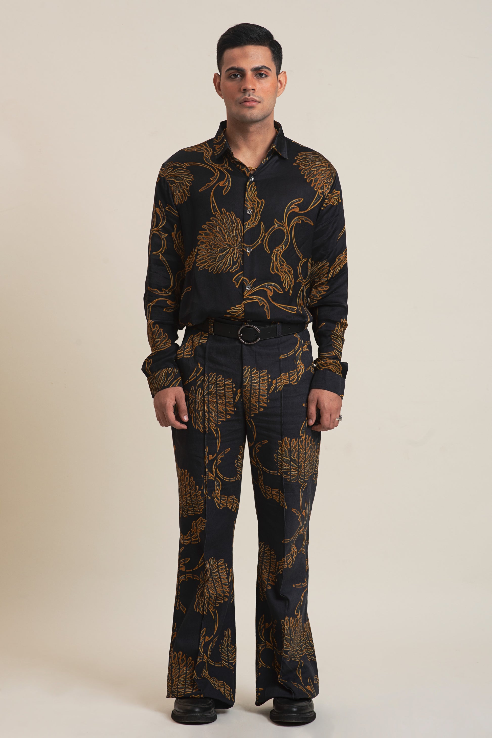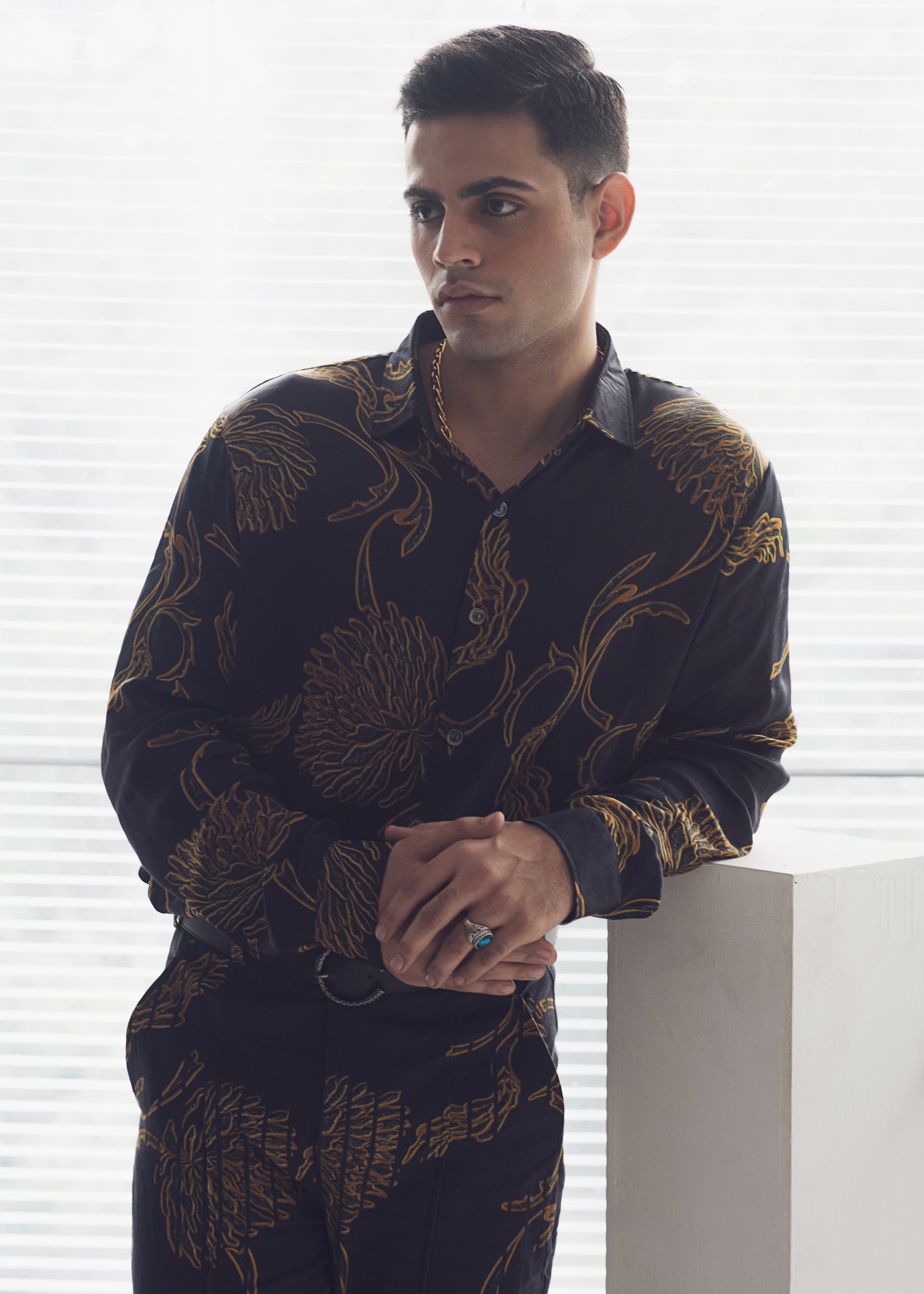 The luxury ensemble featuring artistic floral elements in the Amber Piedra co-ord set, complete with a metal button closure and a classic shirt collar, paired with finely tailored cotton pants, is indeed perfect for parties and formal occasions. It’s a combination of style, quality, and attention to detail that’s sure to turn heads wherever you go.