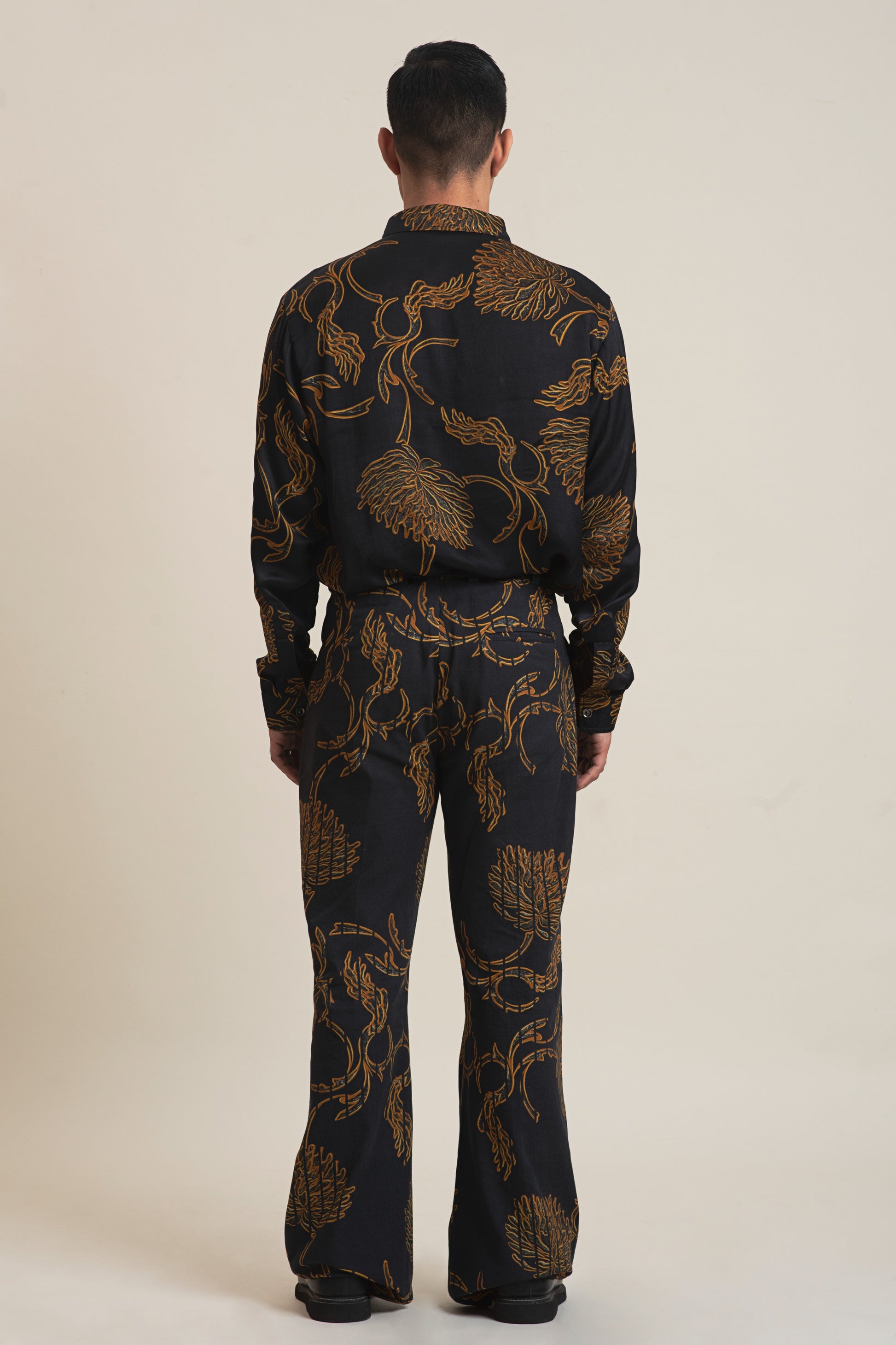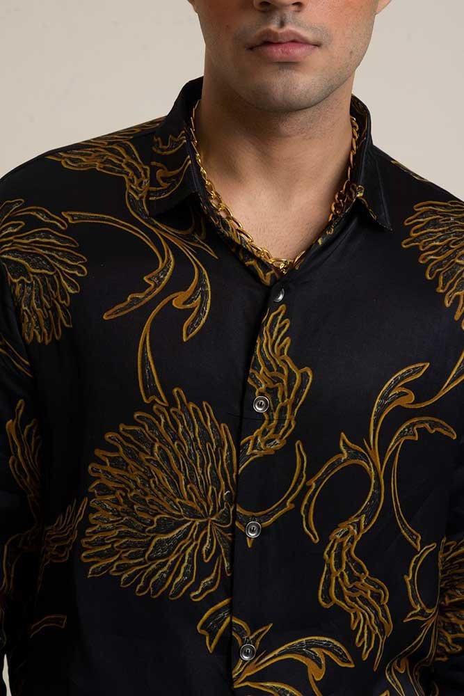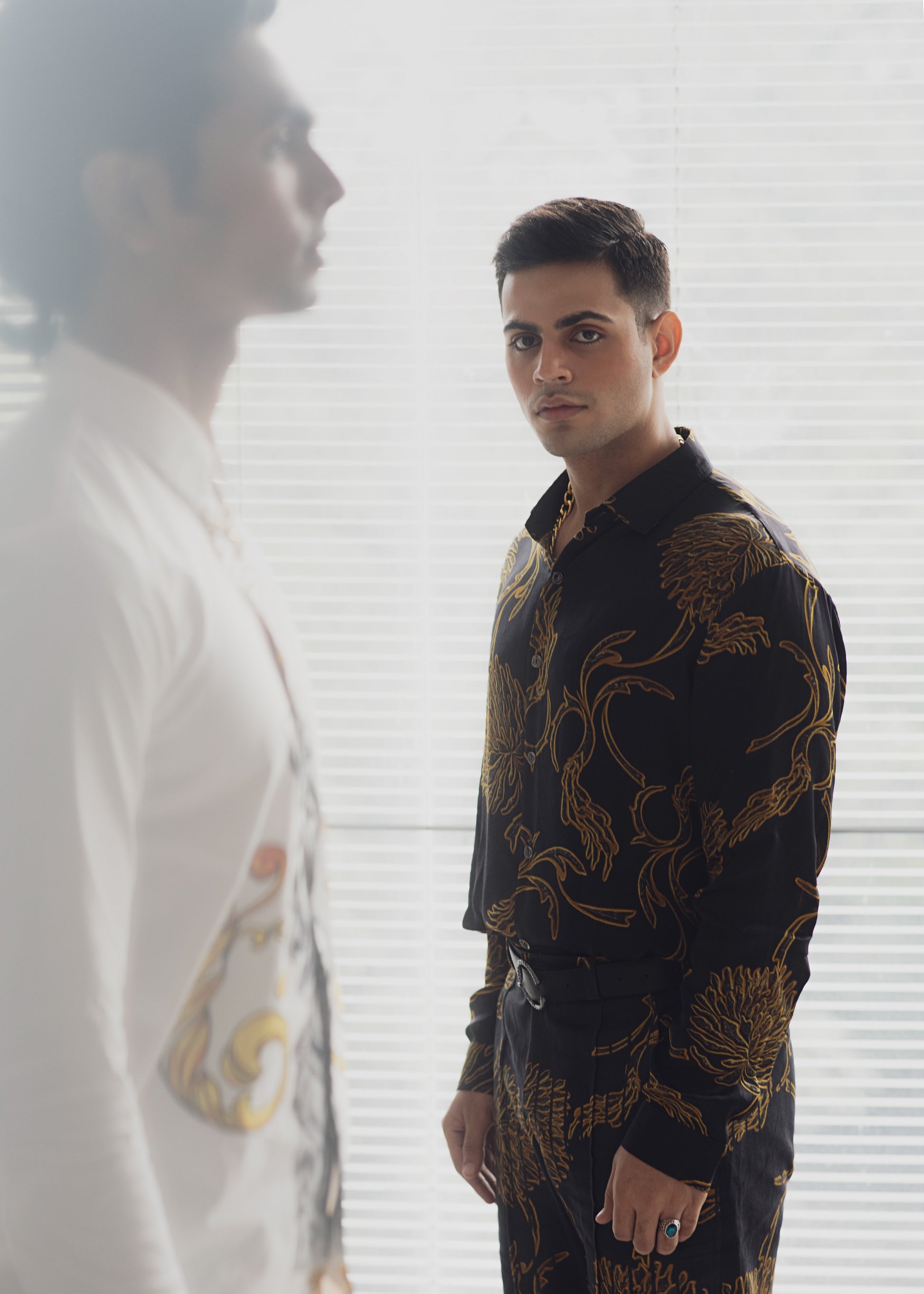 The luxury ensemble featuring artistic floral elements in the Amber Piedra co-ord set, complete with a metal button closure and a classic shirt collar, paired with finely tailored cotton pants, is indeed perfect for parties and formal occasions. It’s a combination of style, quality, and attention to detail that’s sure to turn heads wherever you go.