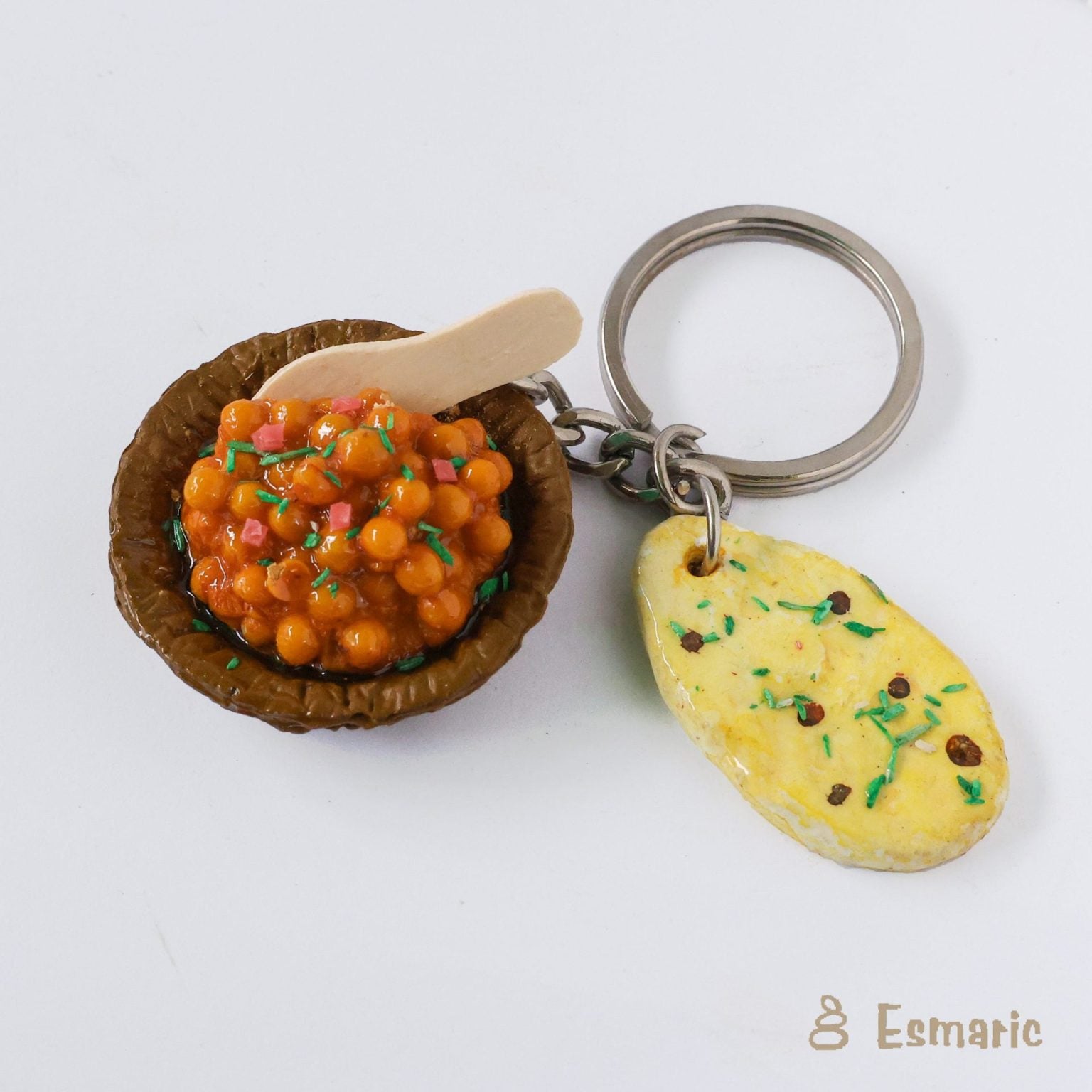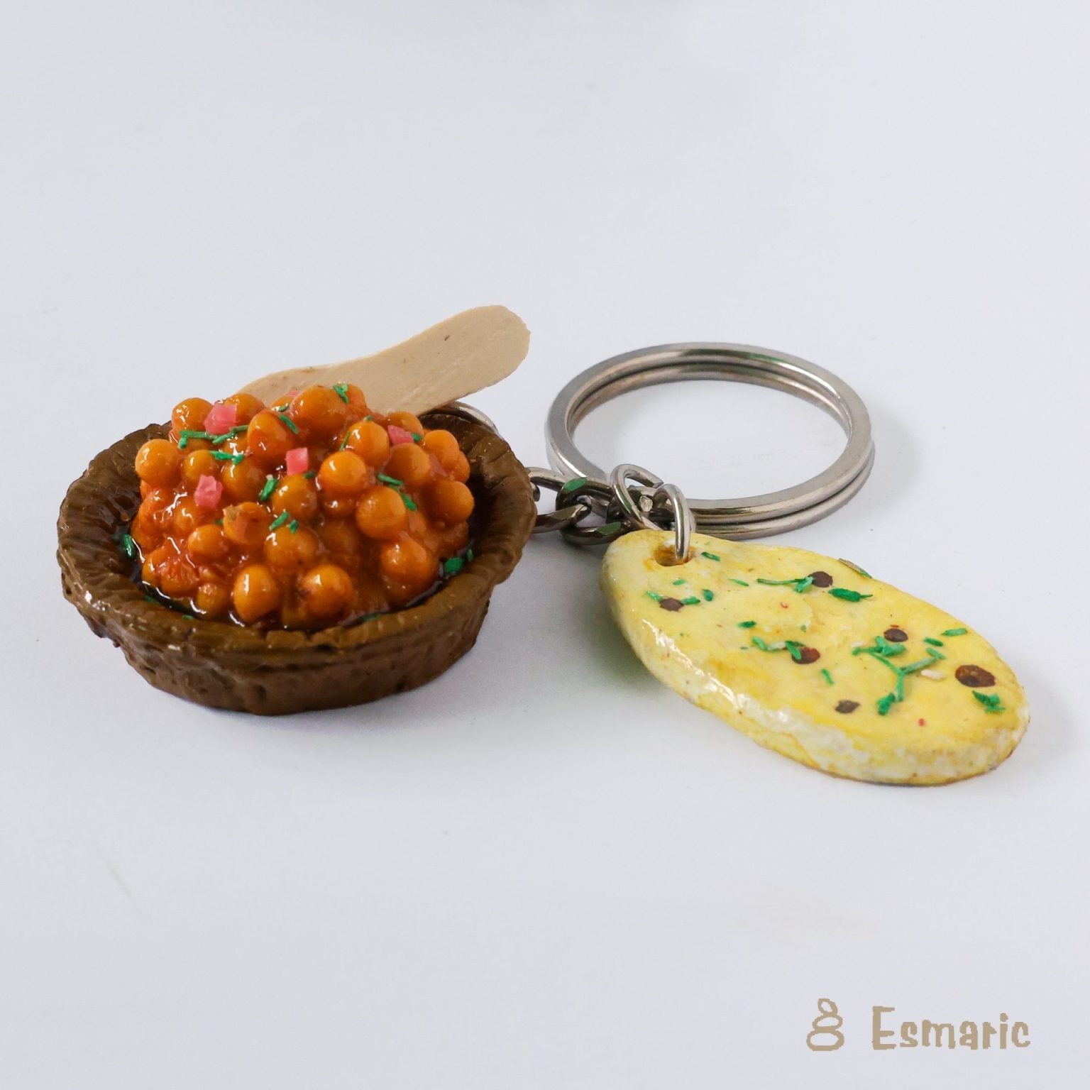 Chole with Kulcha, a hearty and satisfying dish that brings together spicy chickpeas and fluffy, oven-baked bread. This classic combination is a staple of North Indian cuisine, loved for its robust flavours and comforting appeal. Our Chole with Kulcha Miniature Keychain pays homage to this culinary delight, capturing the essence of the dish in miniature form. Each tiny kulcha and bowl of chole is meticulously handcrafted to evoke the aroma and taste of this beloved meal. Perfect for adding a touch of Indian culinary tradition to your decor or gifting to food enthusiasts who appreciate authentic flavours. Elevate your space with the savoury goodness of our Handcrafted Chole with Kulcha Miniature Keychain.