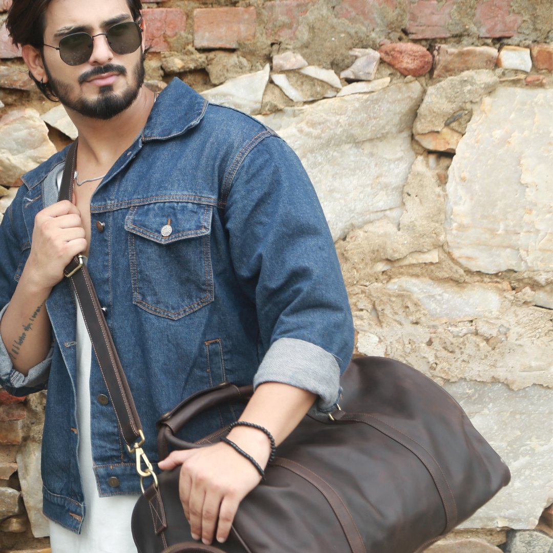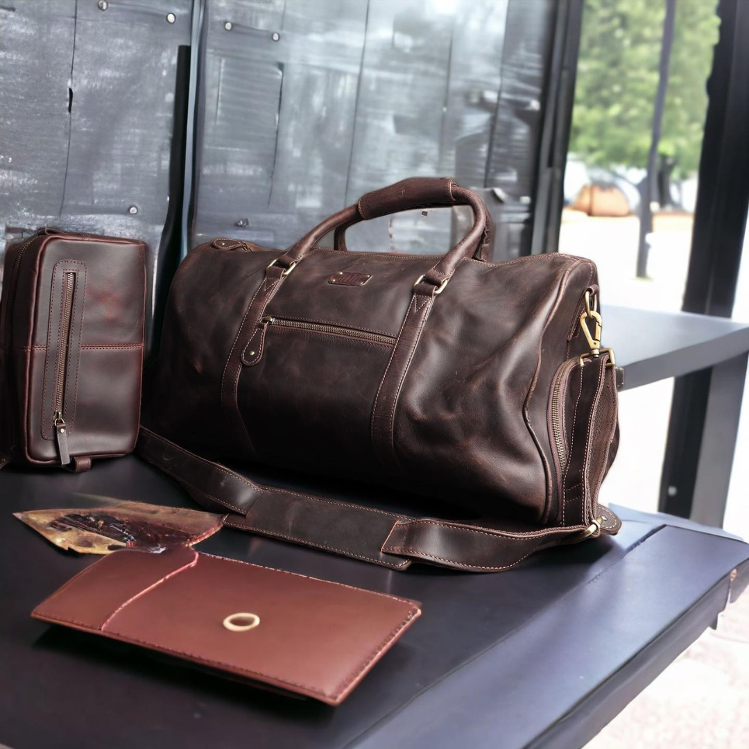 Enjoy your travel experience with this exquisite full grain leather duffle bag. Crafted from the finest genuine leather, it offers both durability and a timeless, sophisticated look.