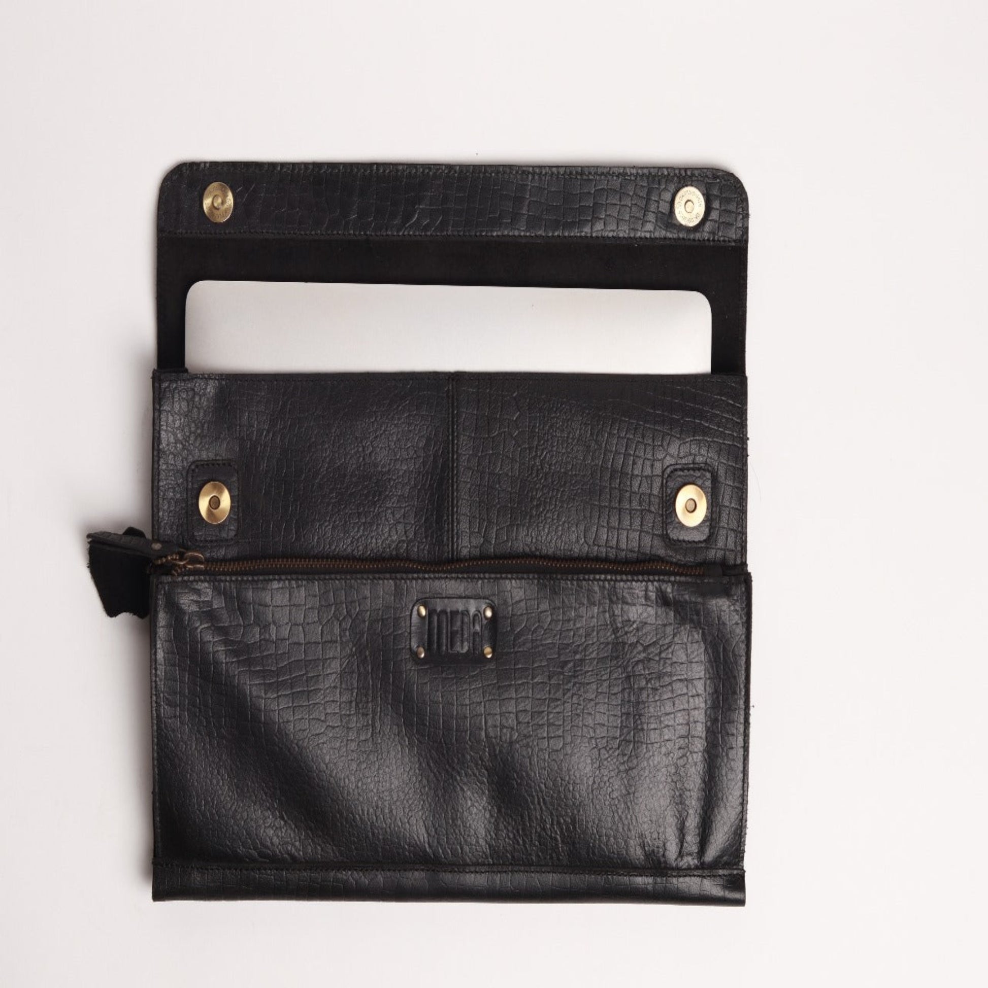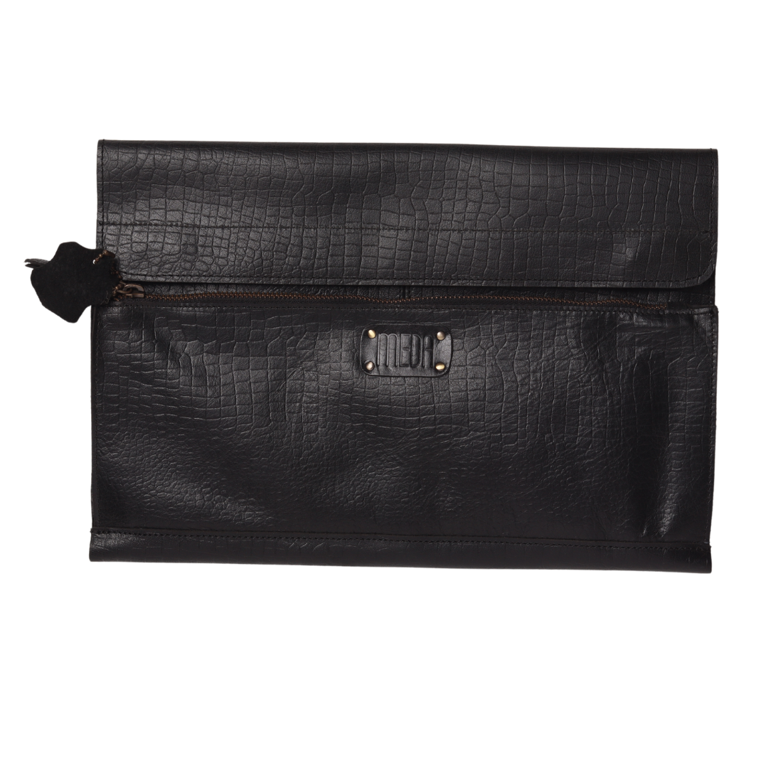 An easy all leather zipper compartment to keep your laptop and a compartment on the front to keep your diary and pen.