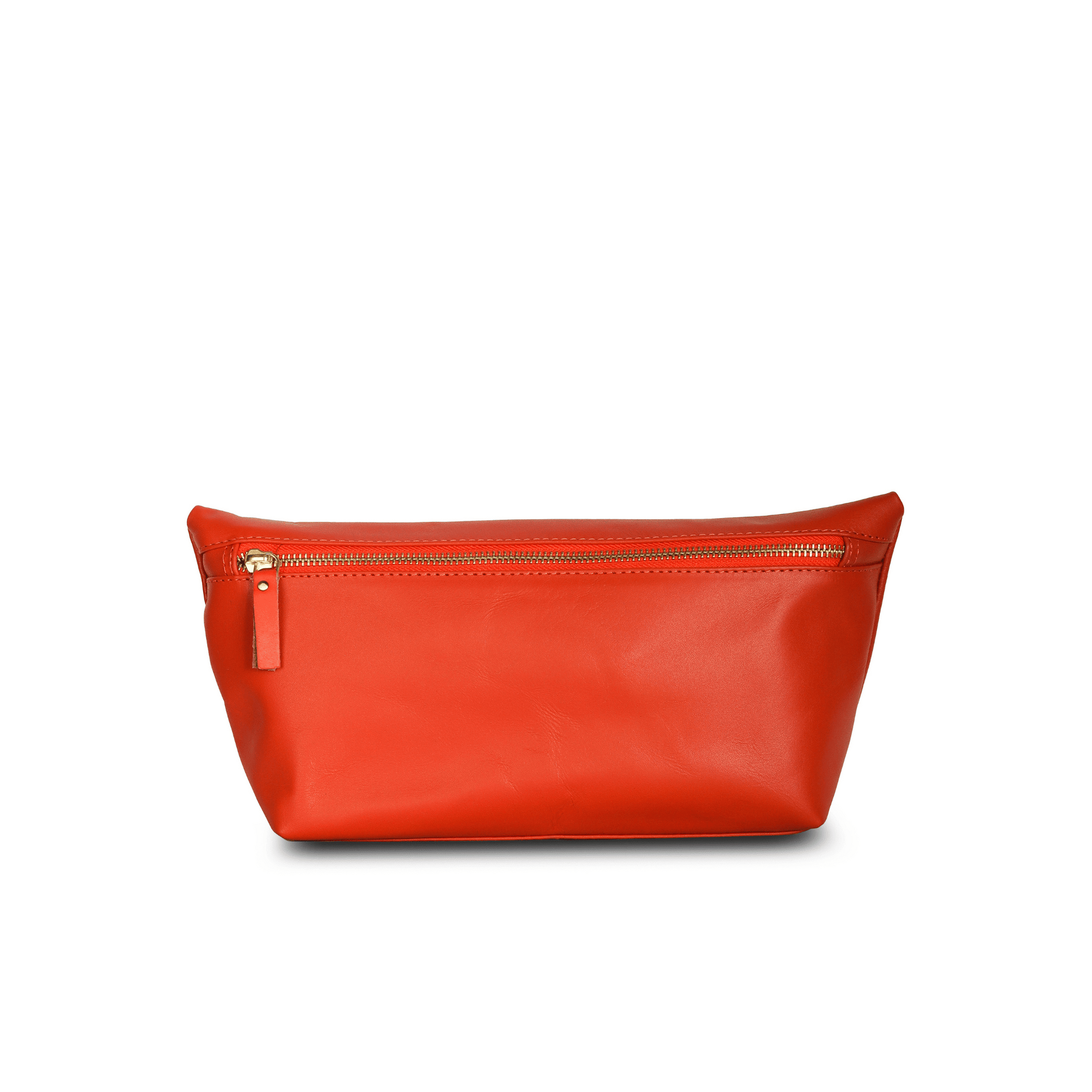 F Carry Adventure Genuine Leather Makeup Pouch Orange Touch