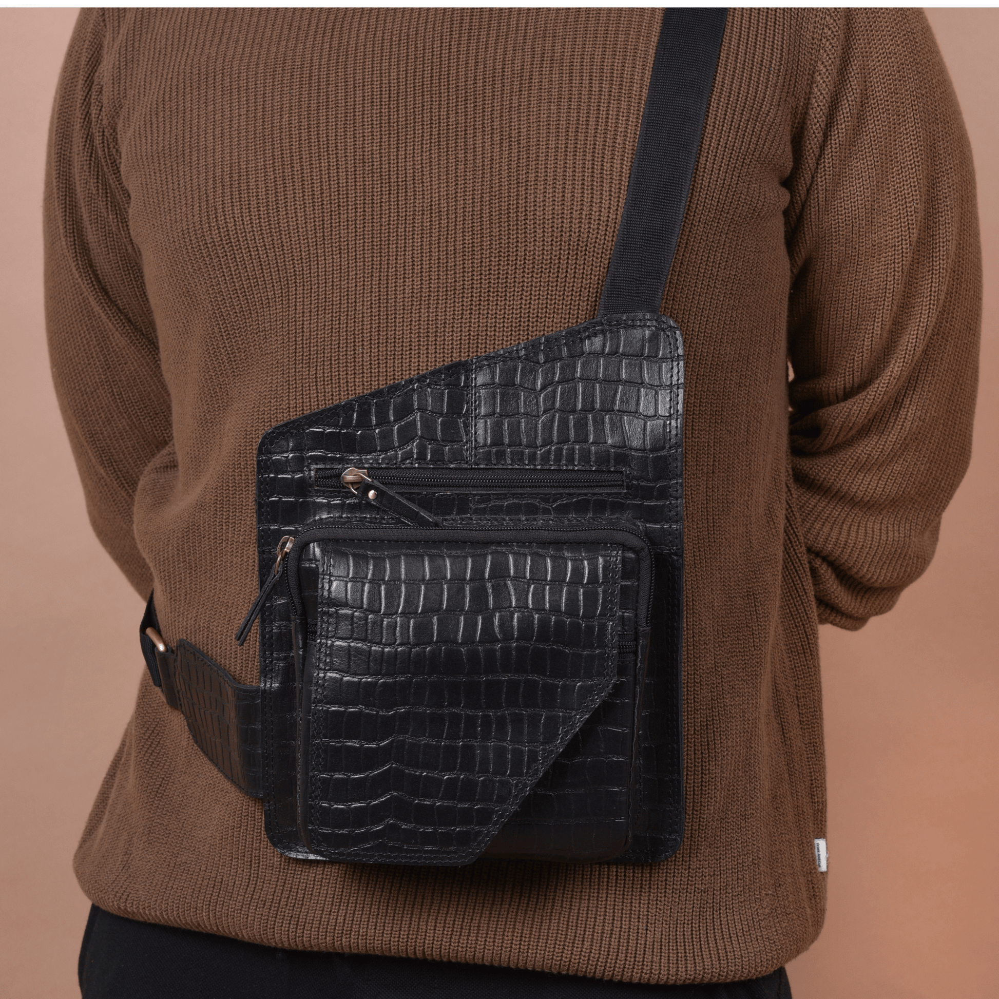 This chest bag, handmade from genuine leather, seamlessly combines style and practicality. Its unique shape is designed to complement the human form, ensuring easy carrying. With nylon straps across the shoulder and waist, it effortlessly accompanies you on travels and trips. It features three external zippers for maximum storage and a discreet back zipper for your documents, meeting all your hands-free travel needs.
