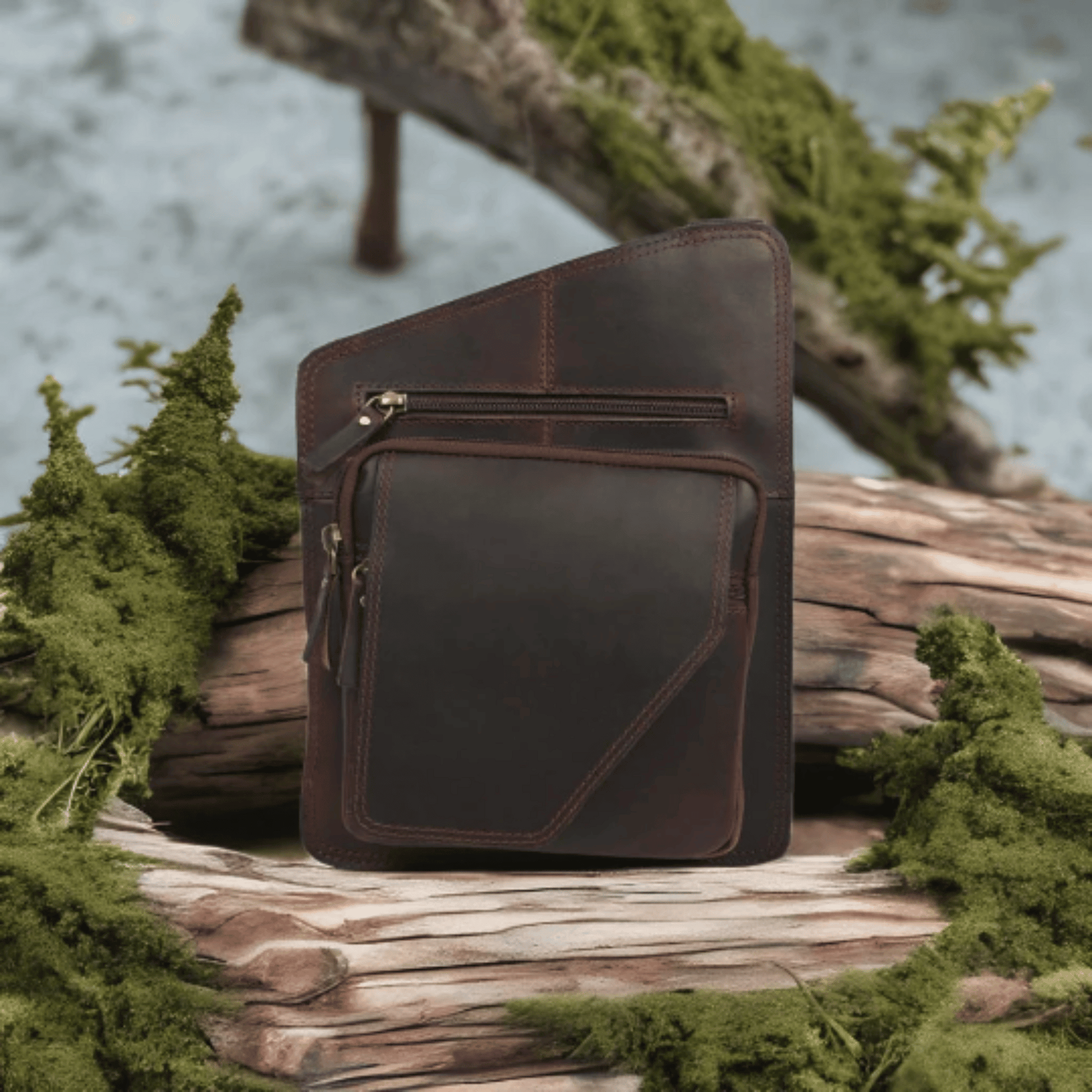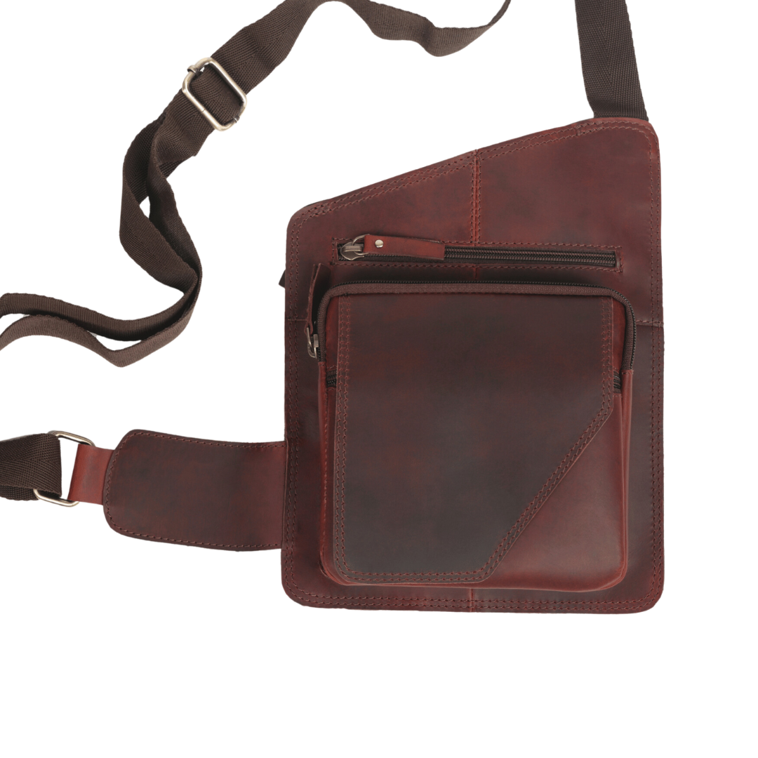 This chest bag, handmade from genuine leather, seamlessly combines style and practicality. Its unique shape is designed to complement the human form, ensuring easy carrying. With nylon straps across the shoulder and waist, it effortlessly accompanies you on travels and trips. It features three external zippers for maximum storage and a discreet back zipper for your documents, meeting all your hands-free travel needs.