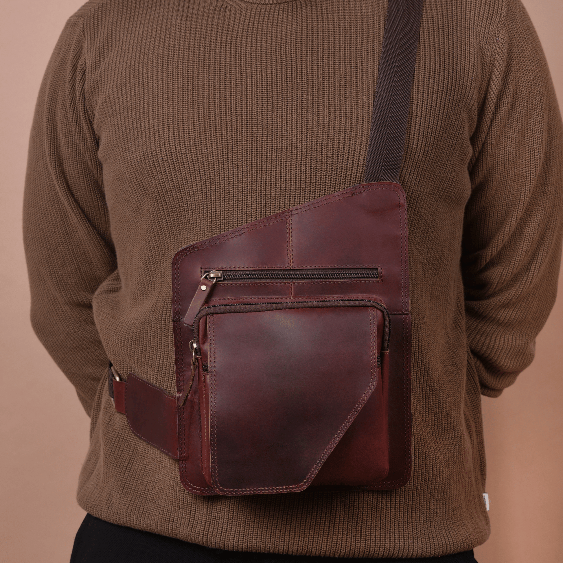 Mini Rover Genuine Leather Chest Bag Sepia wine