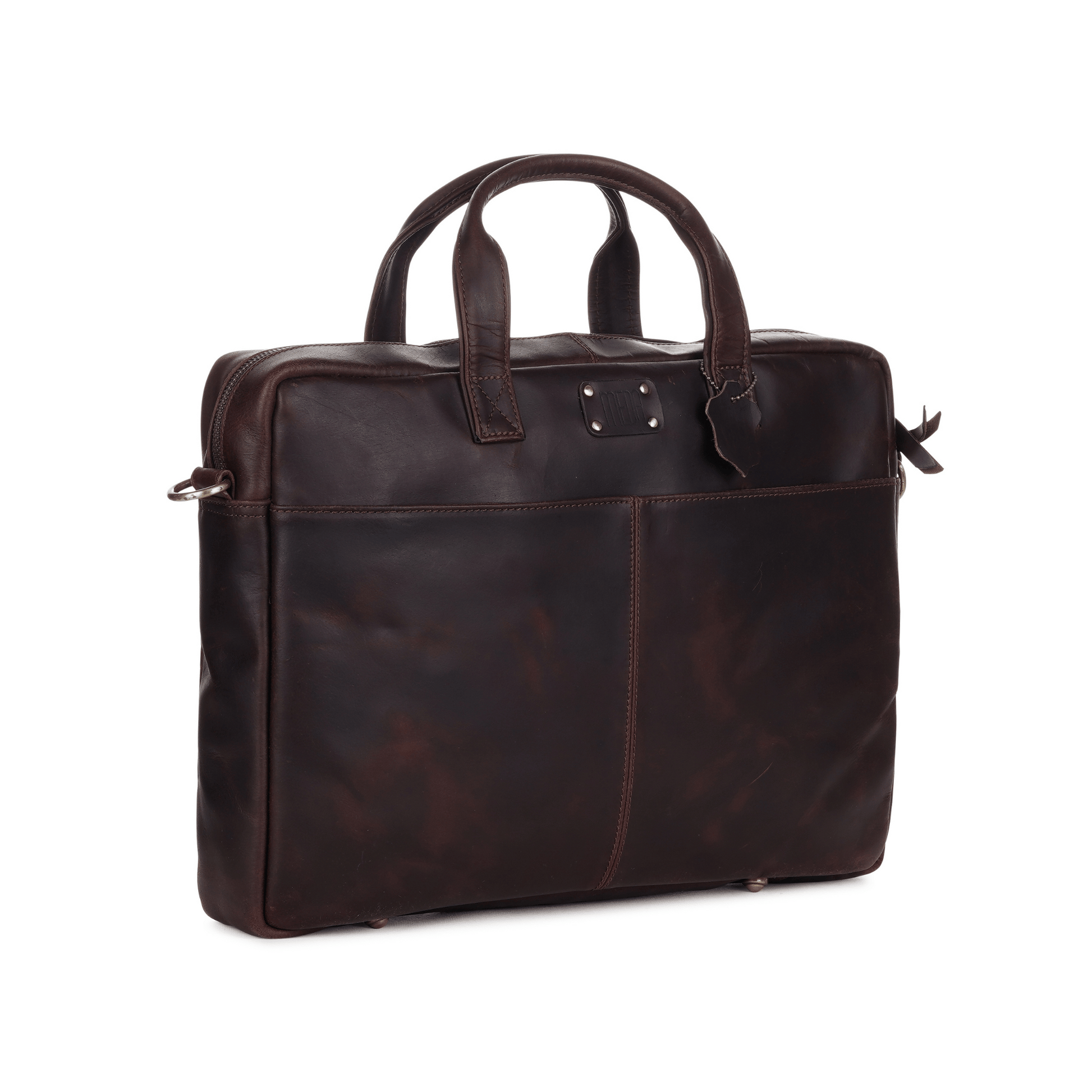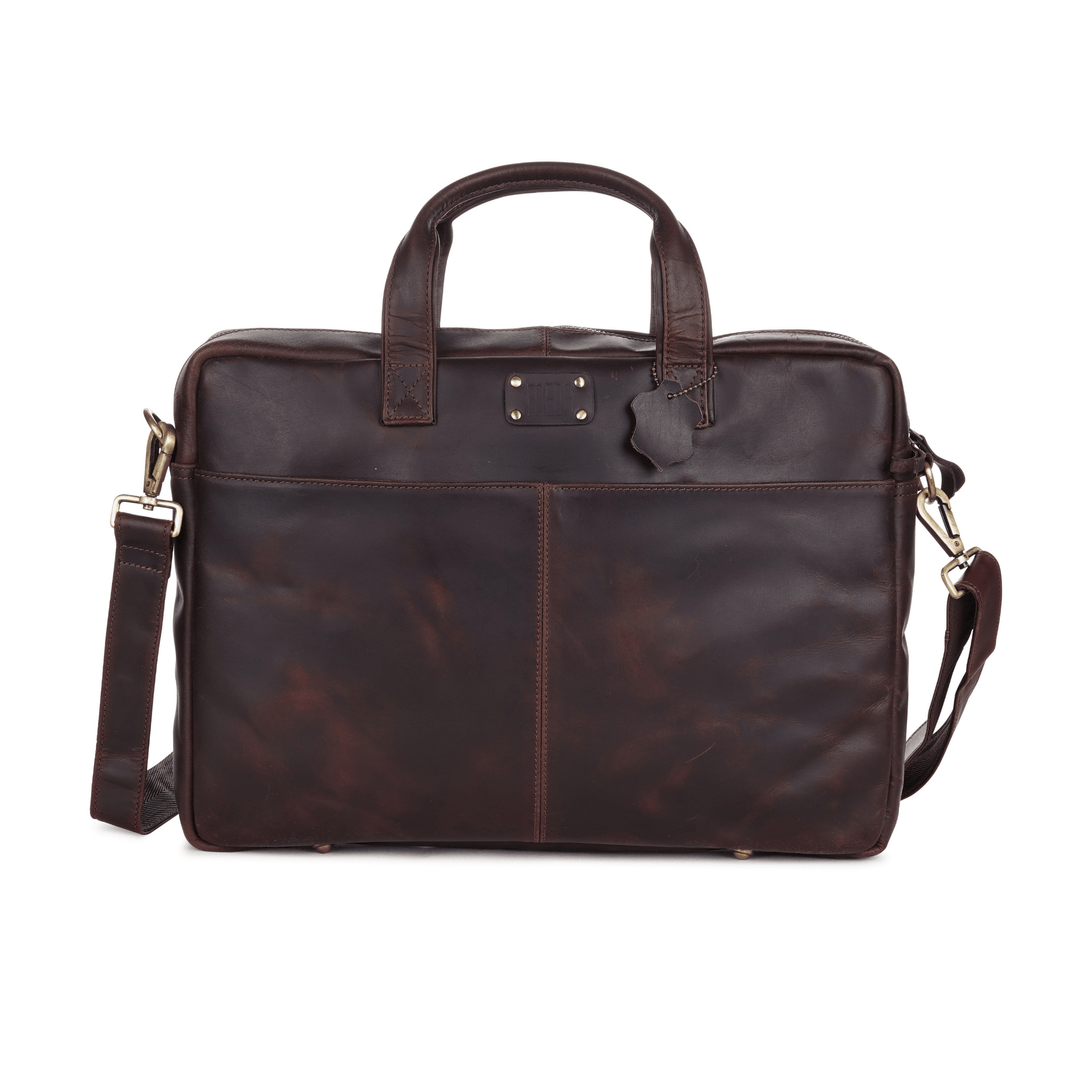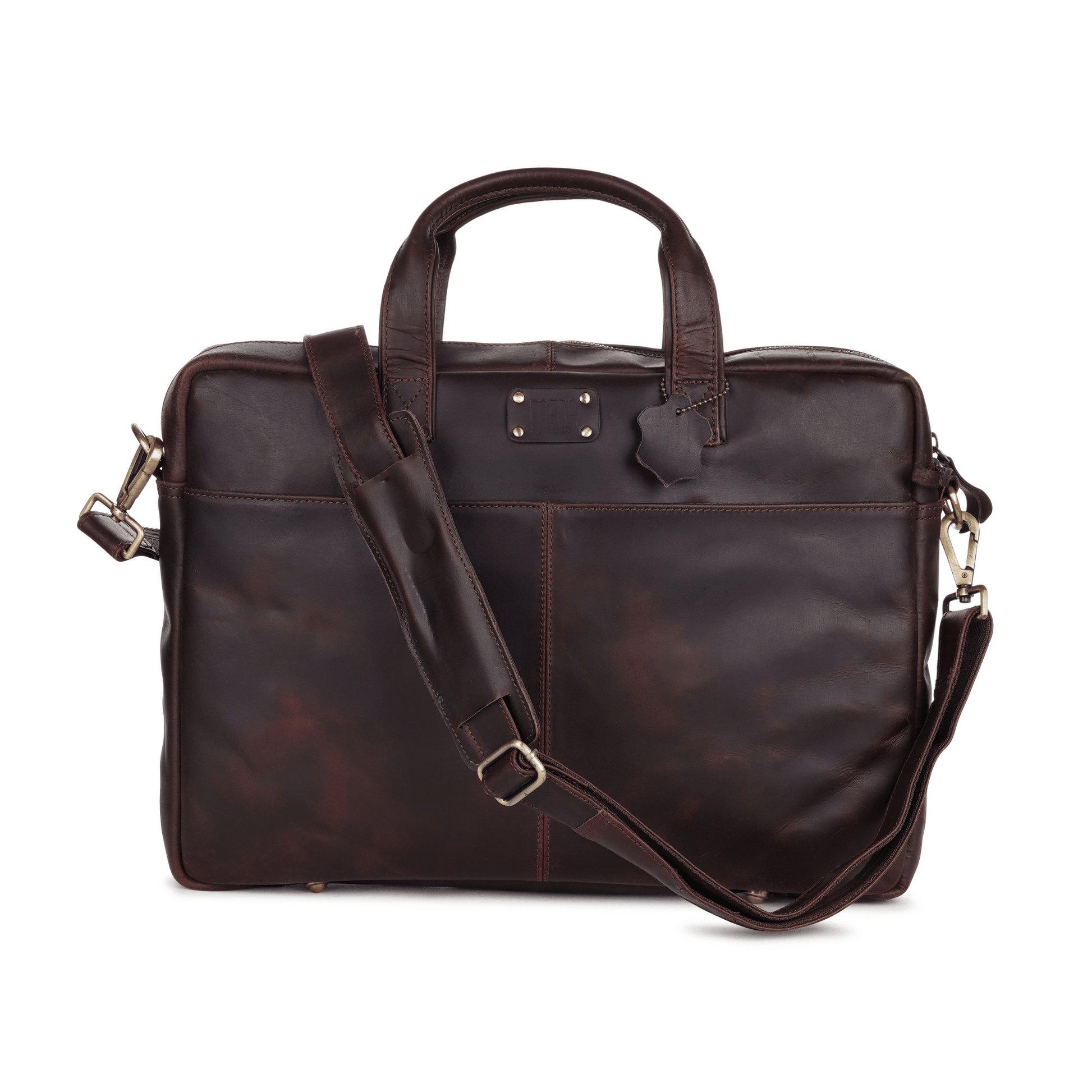 This bag consist of zipper enclosed main laptop compartment, front 2 easy access pockets for your diary and pen. Also has 1 back compartment closure with metal zipper to store your office documents. Detachable and Adjustable leather strap makes the laptop briefcase versatile and easy to use.