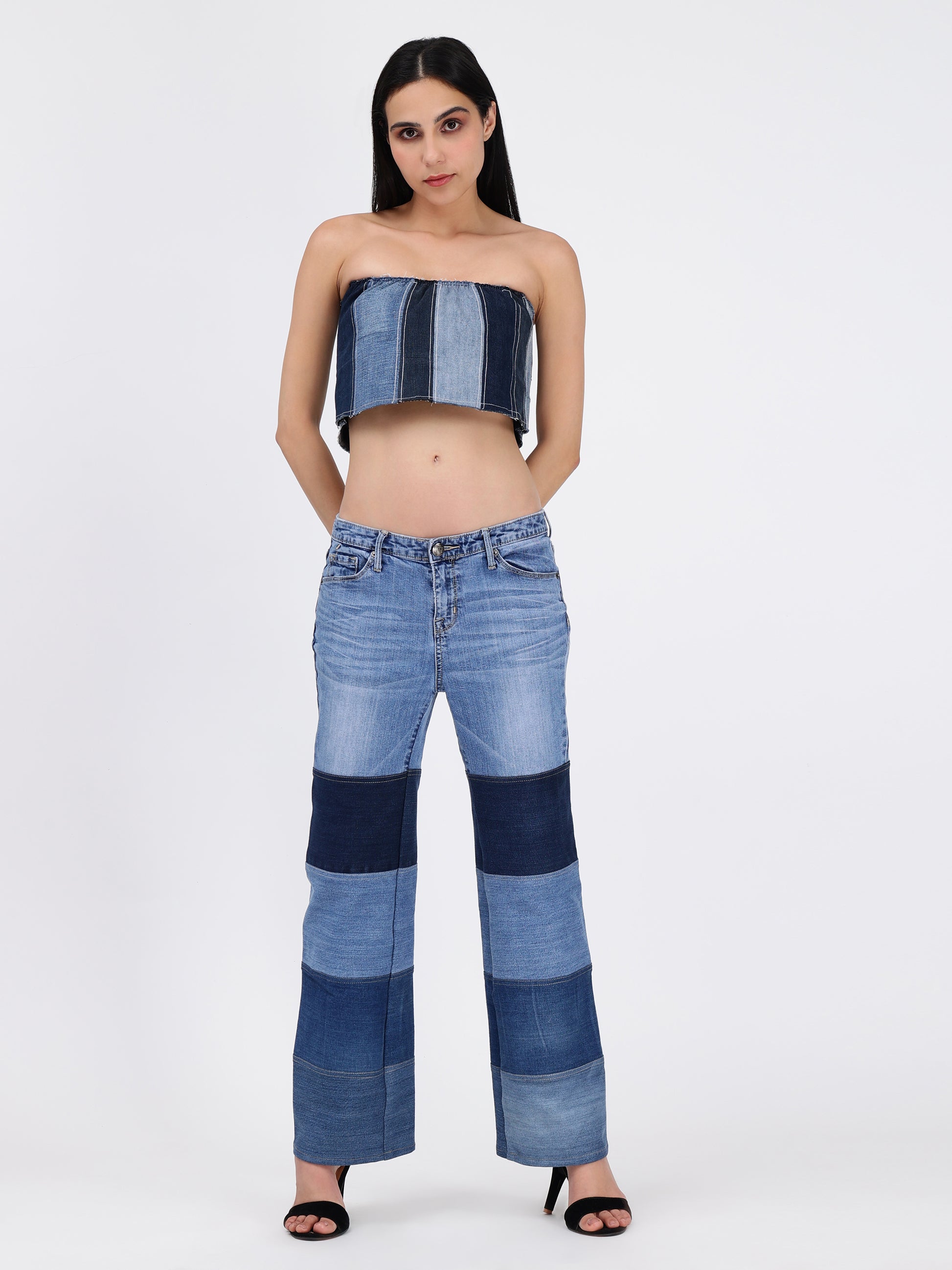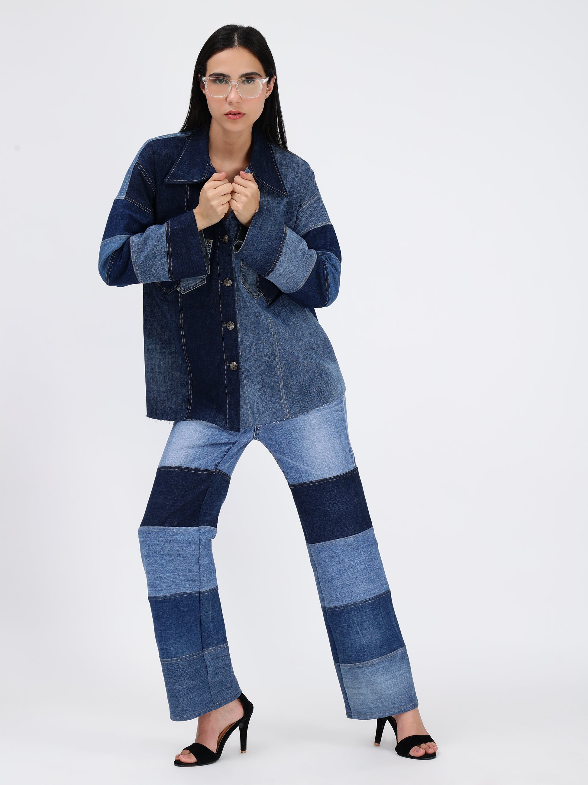 Our denim designs feature a mix of rich textures and fabrics. We are committed to sustainability - rather than using new materials, we give denim scraps new life in our unique creations. Each piece showcases upcycled denim, allowing no fabric to go to waste.