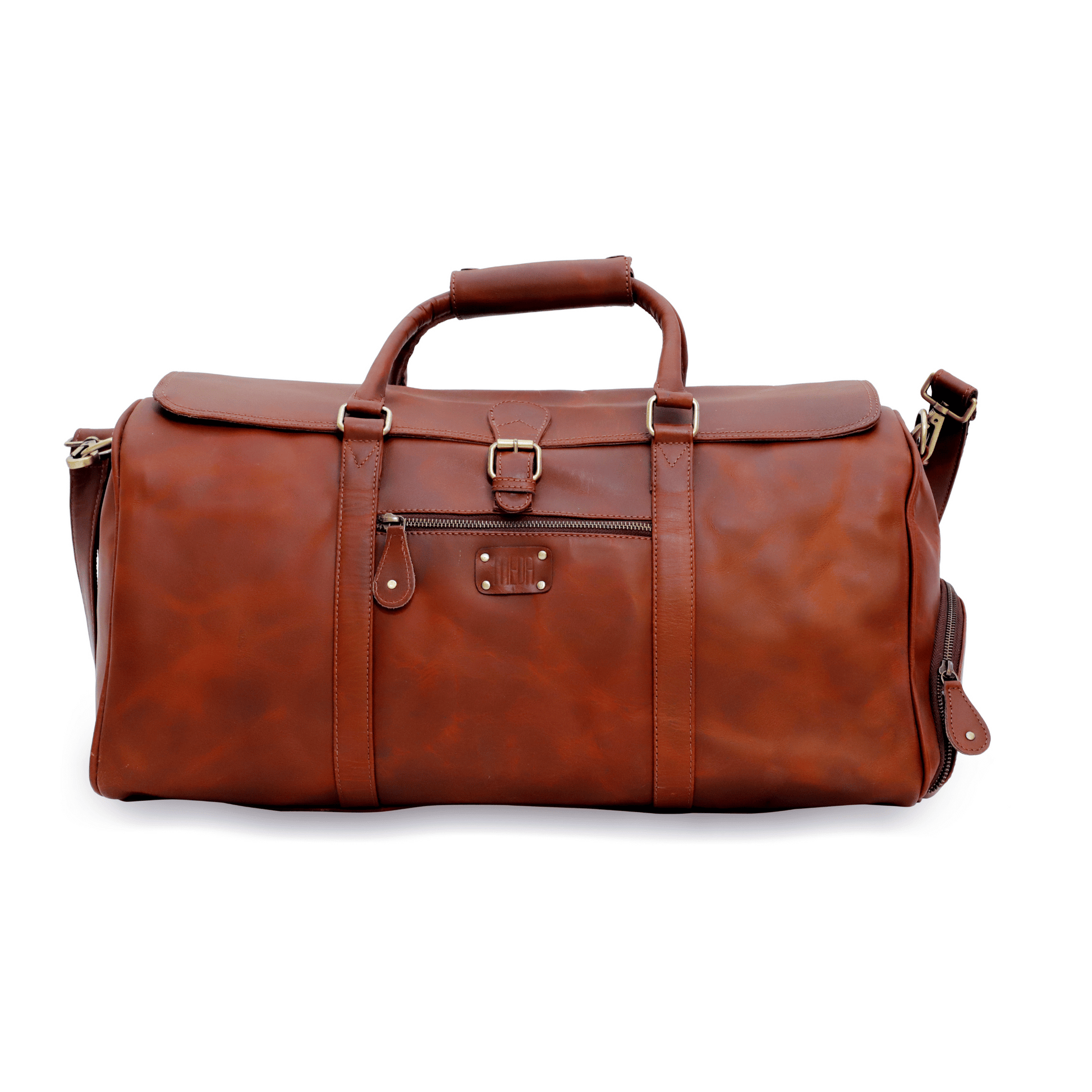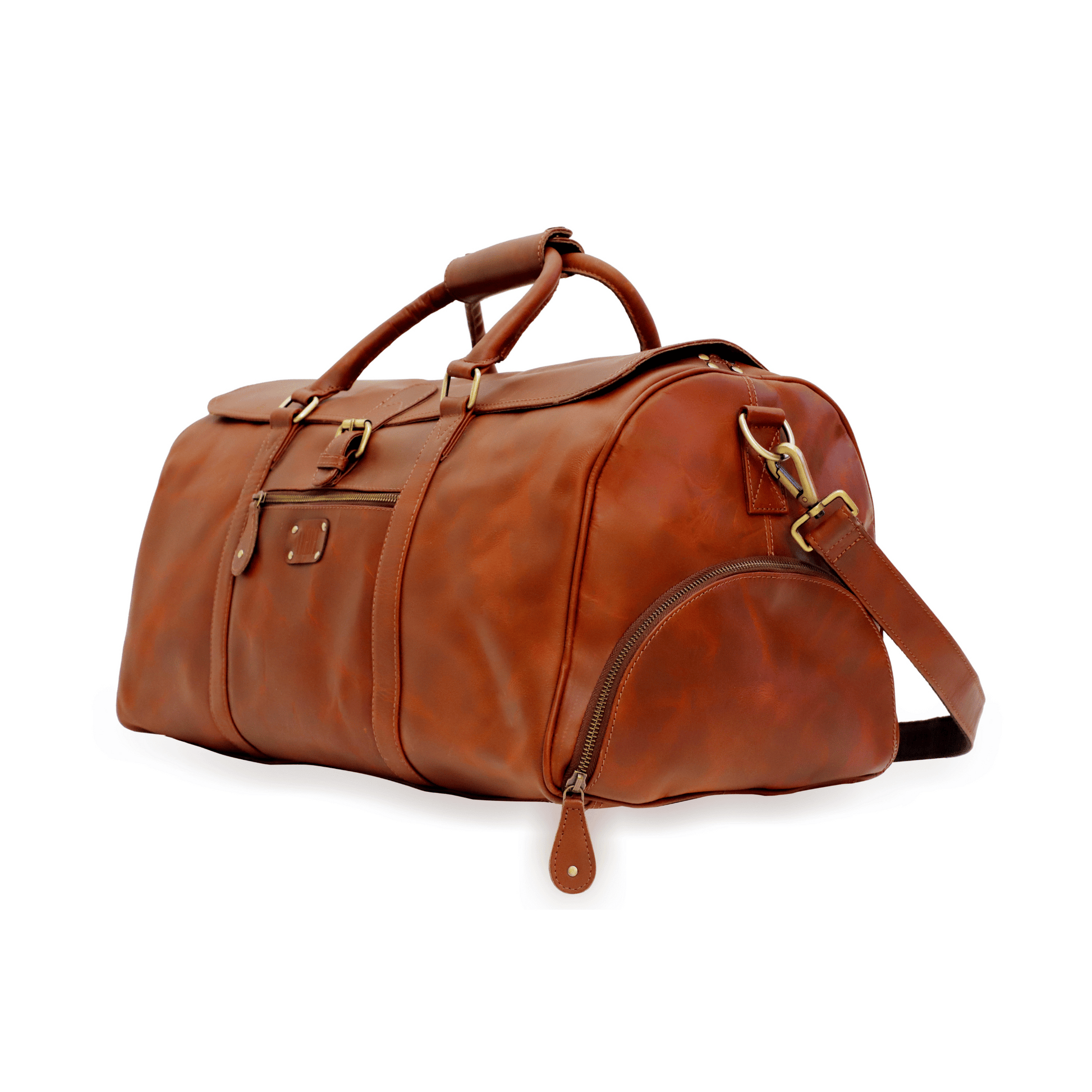 Flaplock Genuine Leather Duffle Bag Tan Touch