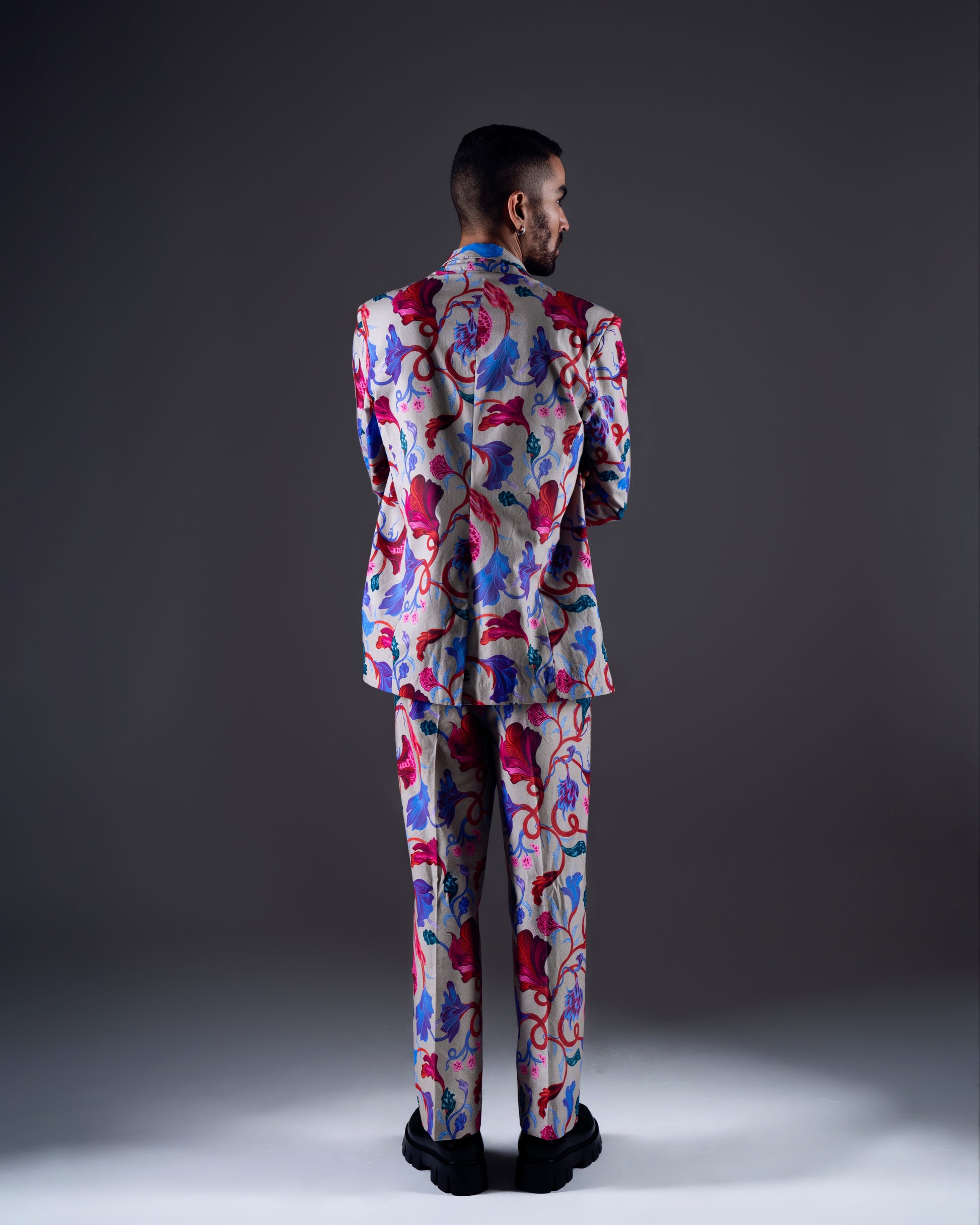 Make a statement with a double-breasted printed blazer inspired by wildflowers! The digital printing on fine quality cotton suiting fabric ensures a one-of-a-kind look and feel. Plus, the relaxed fit adds a touch of comfort to the chic style, making it perfect for any occasion.