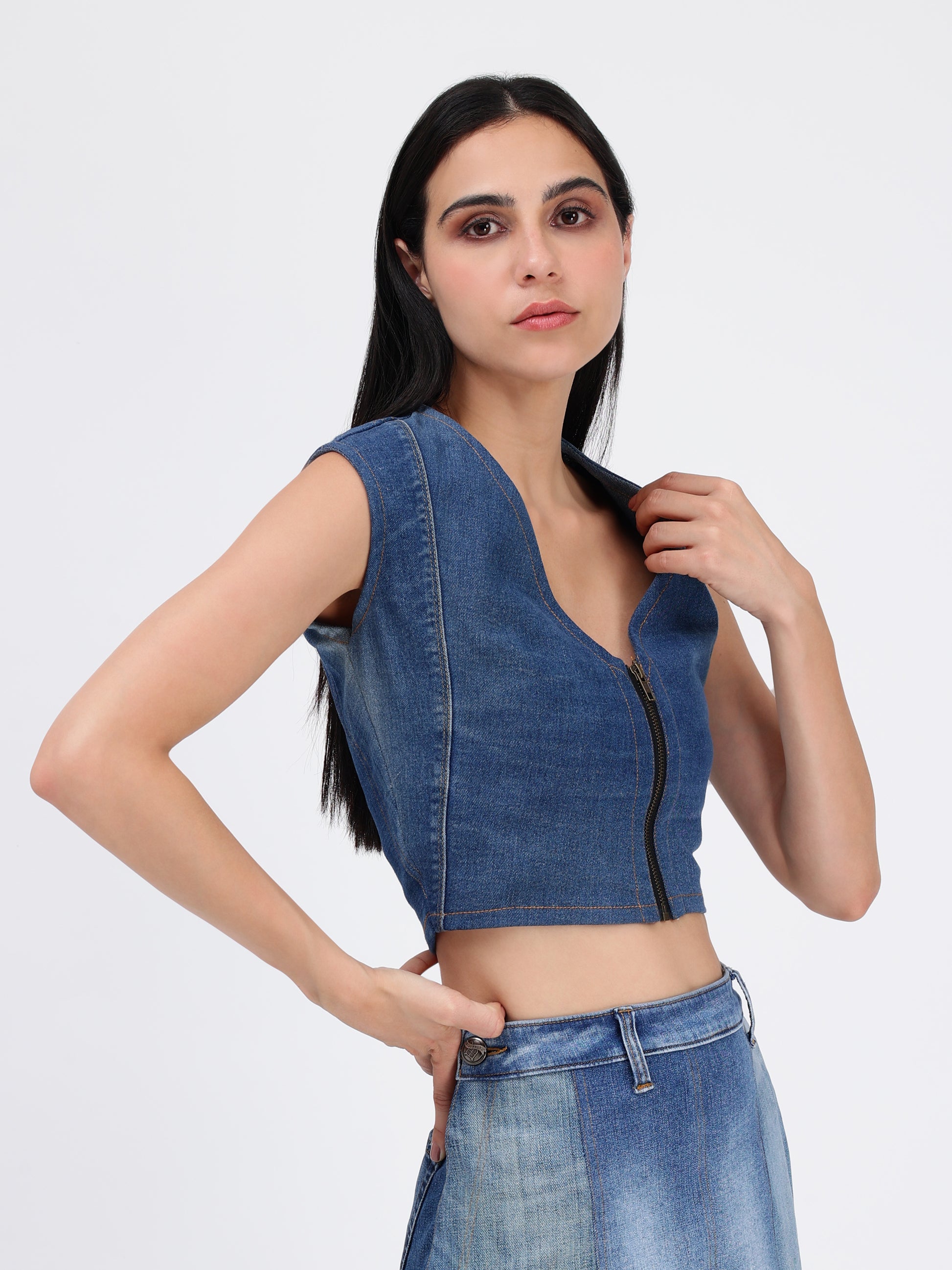 F FRONT ZIPPER TOP (BLUE)