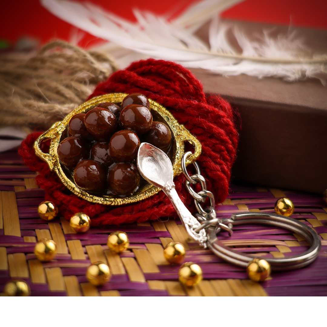 Gulab Jamun, the epitome of indulgence in Indian sweets! These soft, spongy dumplings soaked in fragrant sugar syrup are a delight for the senses. Introducing our exquisite Handcrafted Gulab Jamun Miniature, a tiny treasure reminiscent of India’s beloved dessert. Crafted with care and attention to detail, each miniature keychain of gulab jamun captures the rich texture and aromatic sweetness of the traditional delicacy. Perfect for adding a touch of sweetness or gifting to friends and family who have a sweet tooth. Experience the decadence of Indian desserts with our meticulously handcrafted Gulab Jamun Miniature Keychain.