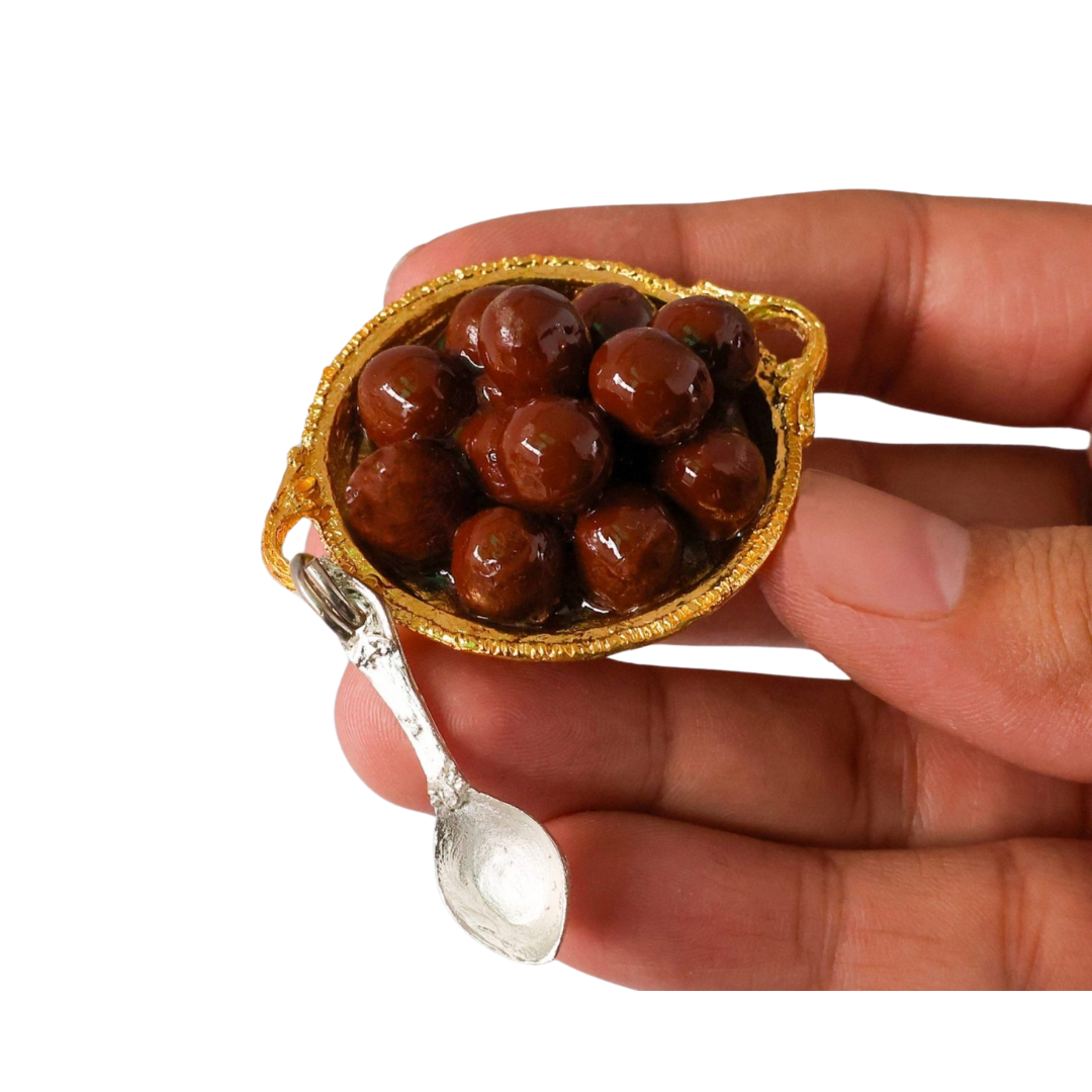 Gulab Jamun is like the king of Indian sweets! It’s those soft, spongey balls soaked in sweet syrup that taste so good. Now, check out our cute Handcrafted Gulab Jamun Miniature Fridge Magnet. It’s like a little version of the real thing! Made with lots of care, each mini Gulab Jamun looks just like the big ones and smells sweet too. Perfect for making your fridge look sweeter or giving to friends who love desserts. Enjoy the yummy taste of Indian sweets with our cute Gulab Jamun Miniature Fridge Magnet.