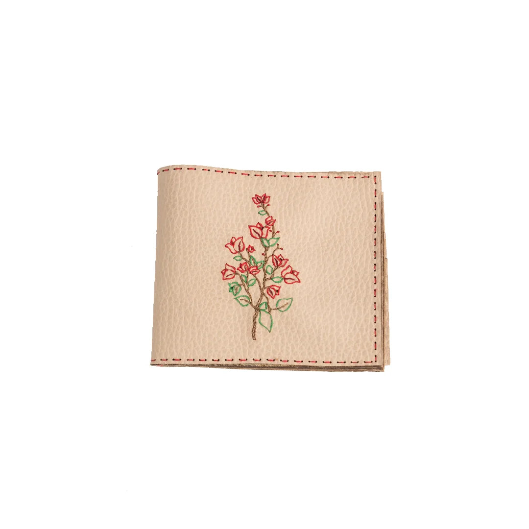 Hand Made And Upcycled Designer Wallets - Flower Embroidery (Red)