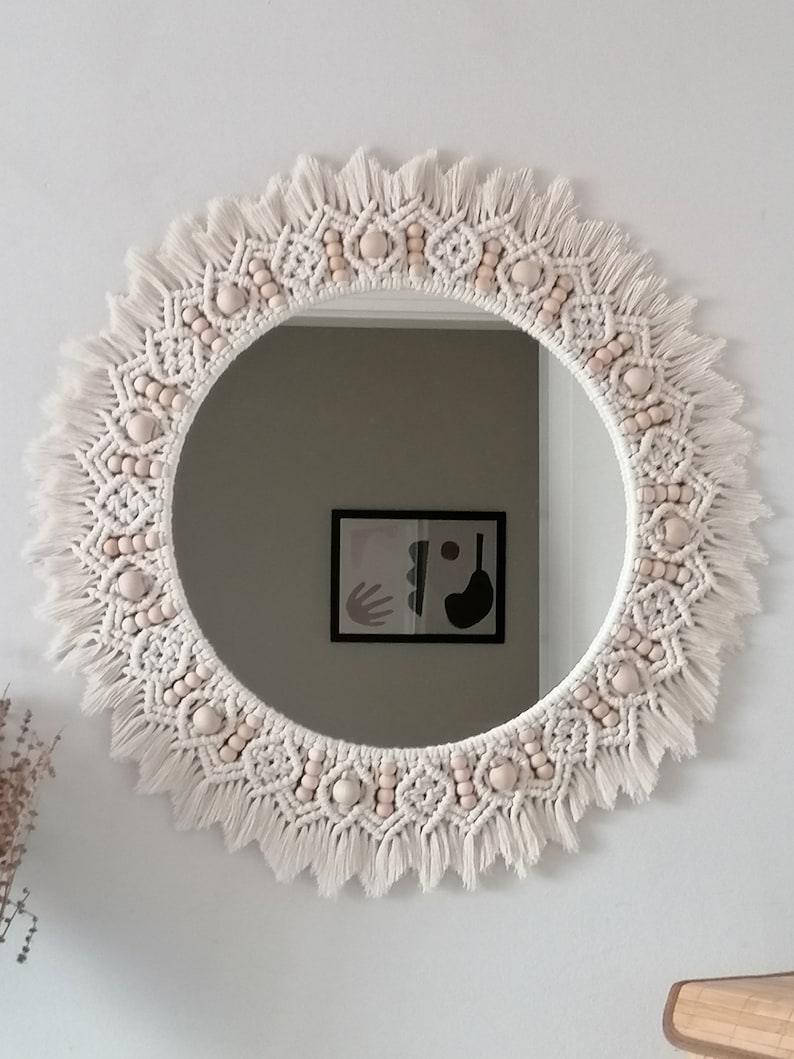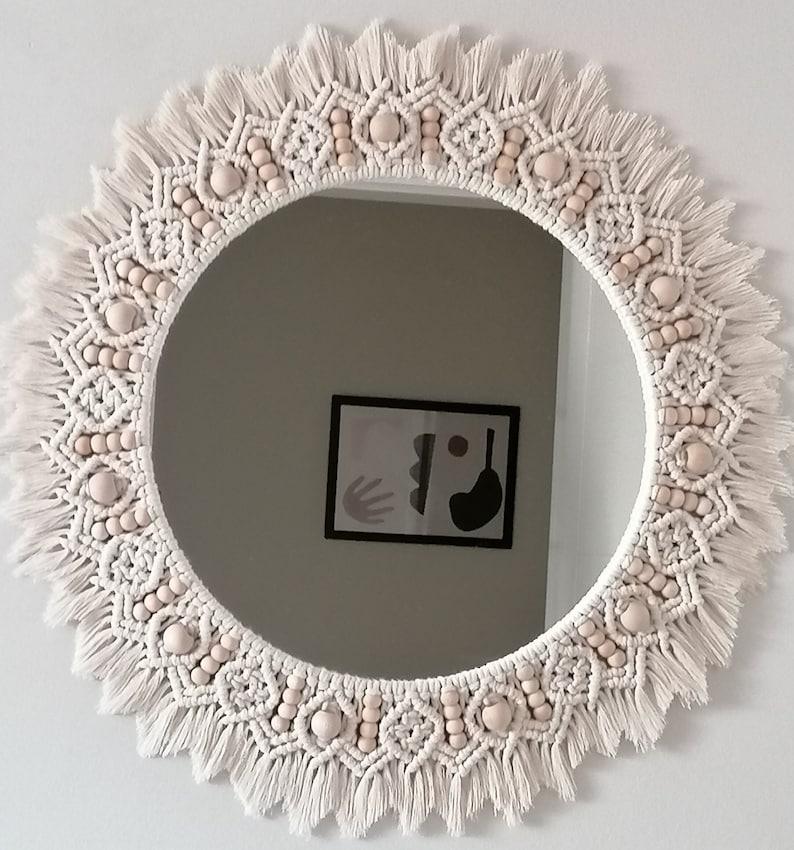 HarmonyKnotReflex - Macrame mirror with wooden beads