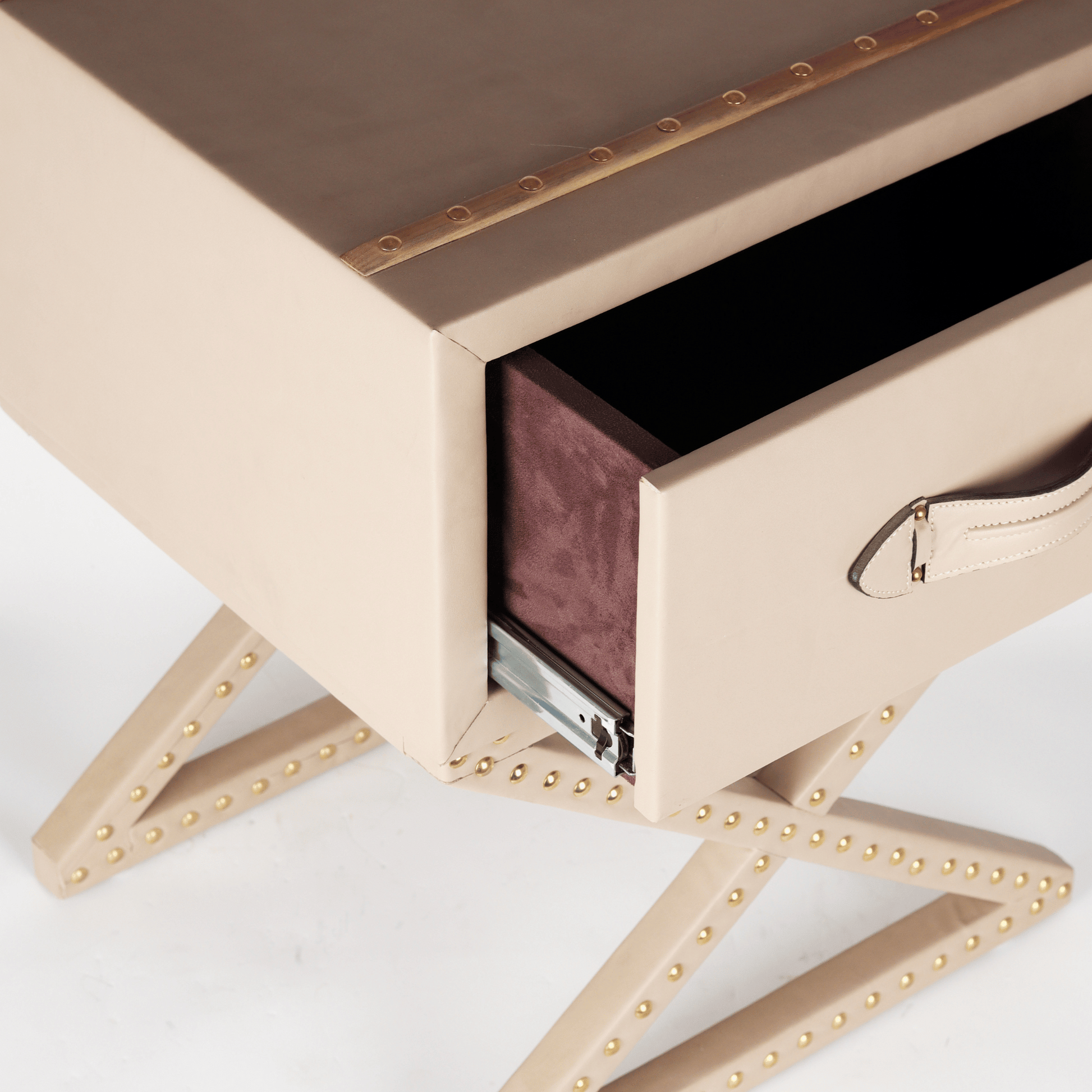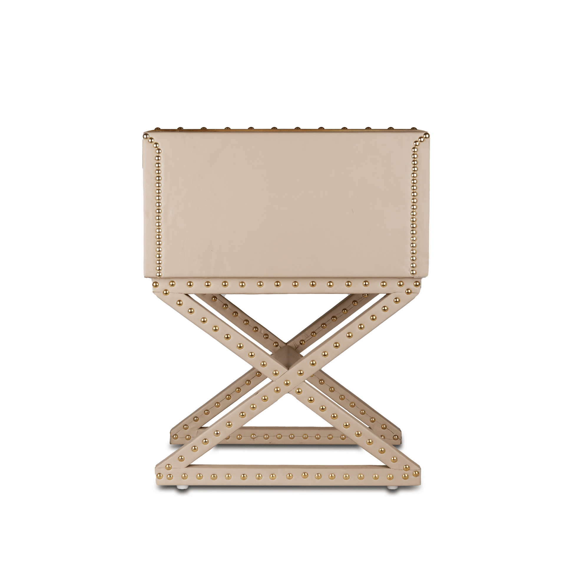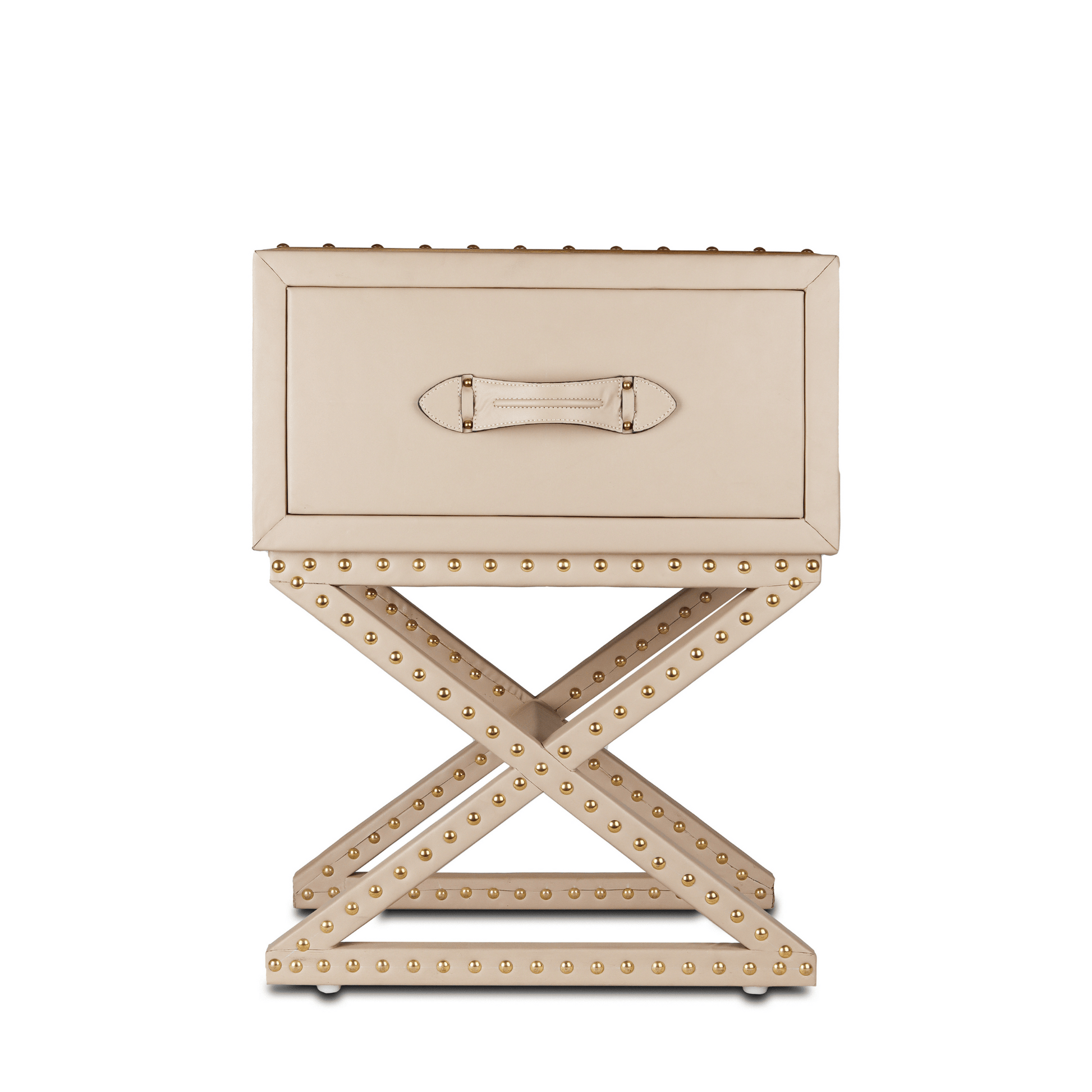 This elegantly designed side table is at home in many different settings. It combines vintage and modernity in a unique way with its durable, faux leather upholstery and minimalist, slender legs. Add some travel-inspired luxury to your interior with its suitcase-style handle.