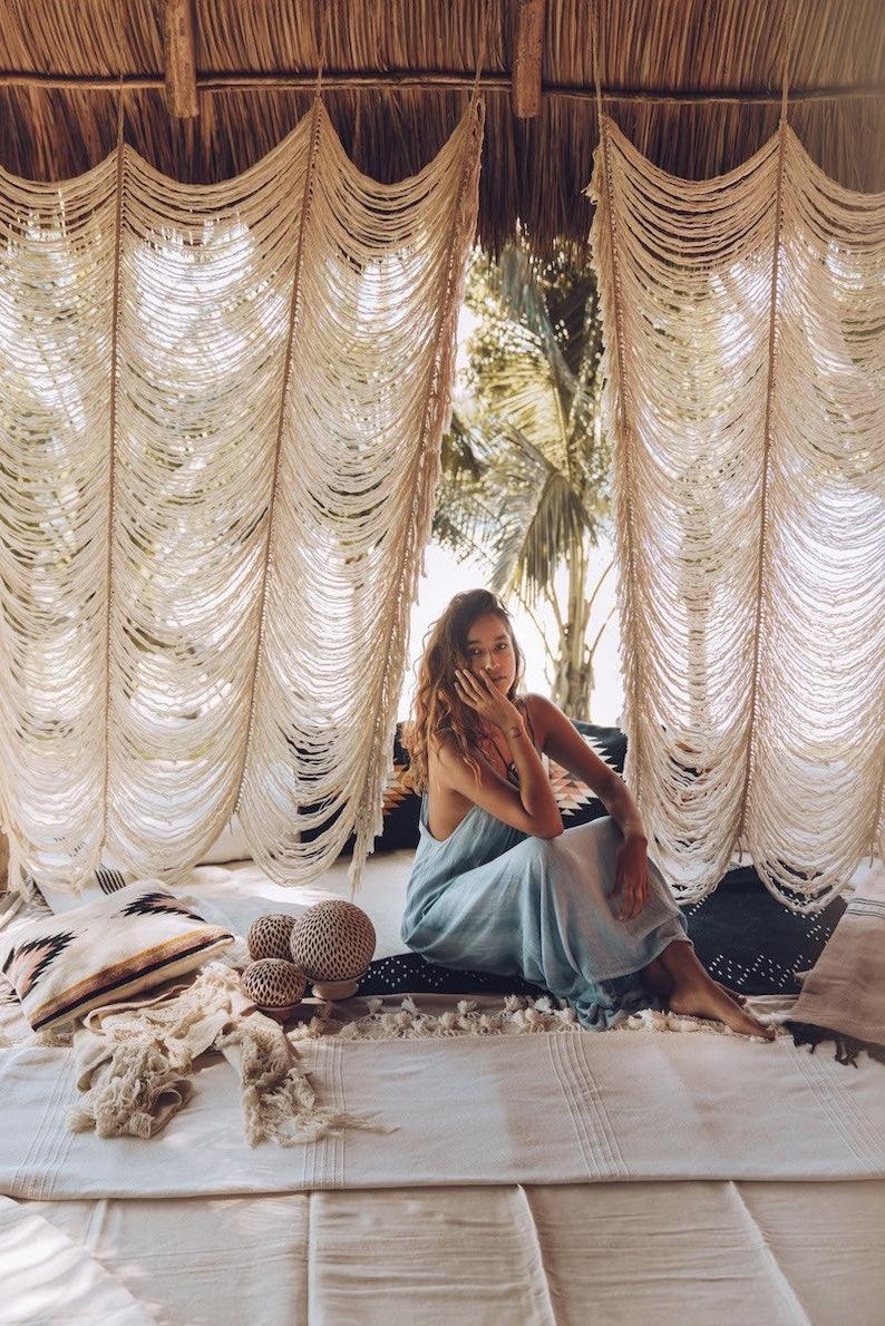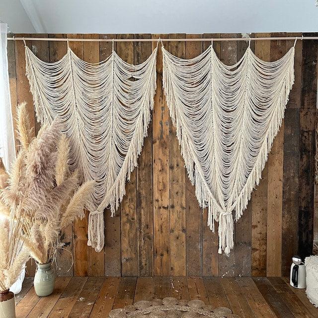 Create a dreamy and beautiful atmosphere at your home with our macramé wall or window curtain crafted with love and dedication with a view to make you feel loved. The curtain/tapestry adds a warm inviting ambiance. Pairs perfectly with any room throughout your home. These hand-knotted backdrops and curtains are as beautiful as they are versatile. They can be used to bring texture and creativity to any space. It would be an amazing gift for a friend, family member or just yourself. Our macramé curtains are meticulously handcrafted using traditional knotting techniques, resulting in unique and intricate designs that bring a touch of elegance to your door.