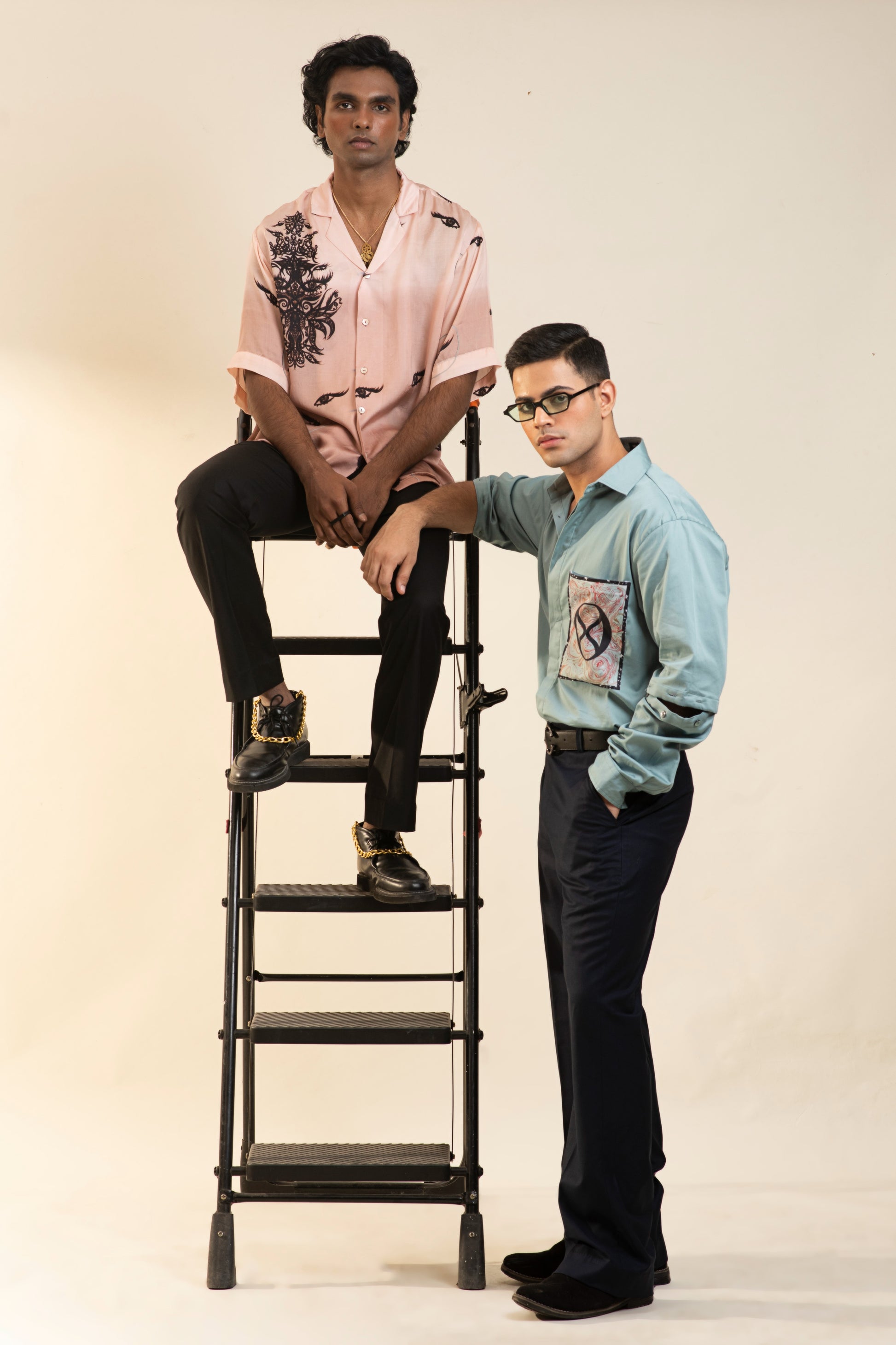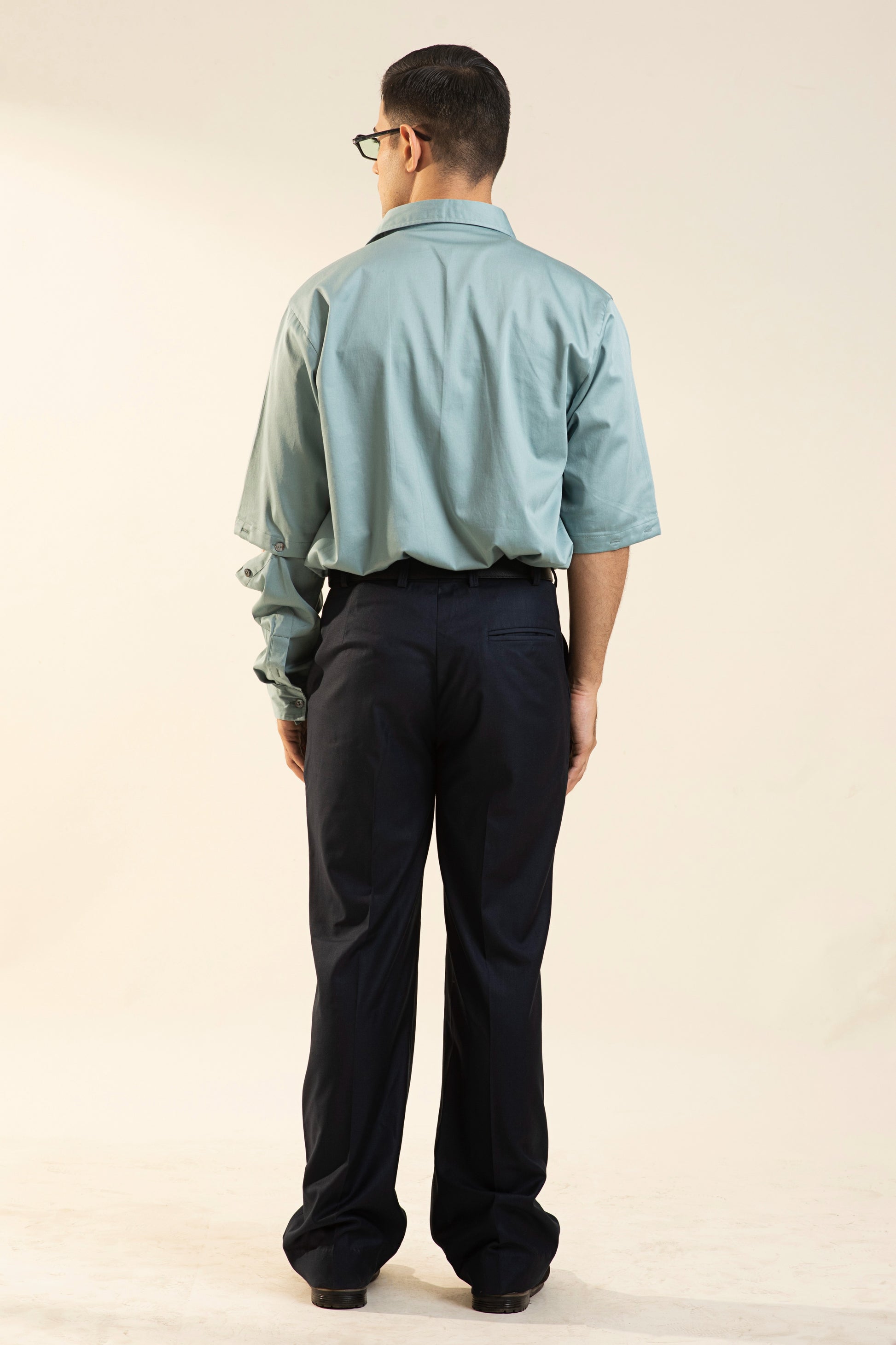 The pale mint green cotton satin shirt with a relaxed fit, concealed placket, and detachable full sleeves sounds effortlessly cool and comfortable. The digitally printed marble effect patch pocket with the Dark Hour logo adds a unique touch of personality. It’s a perfect blend of style and comfort for any occasion.