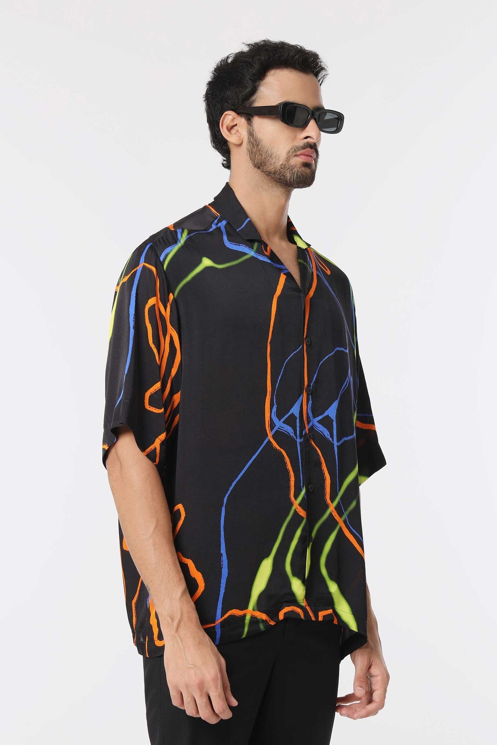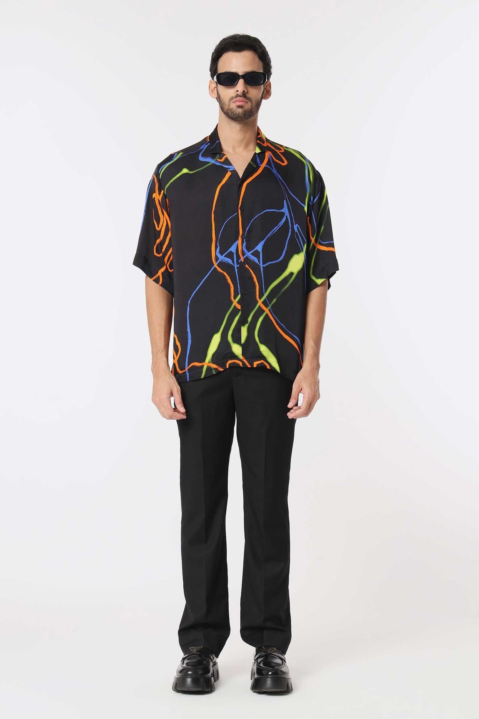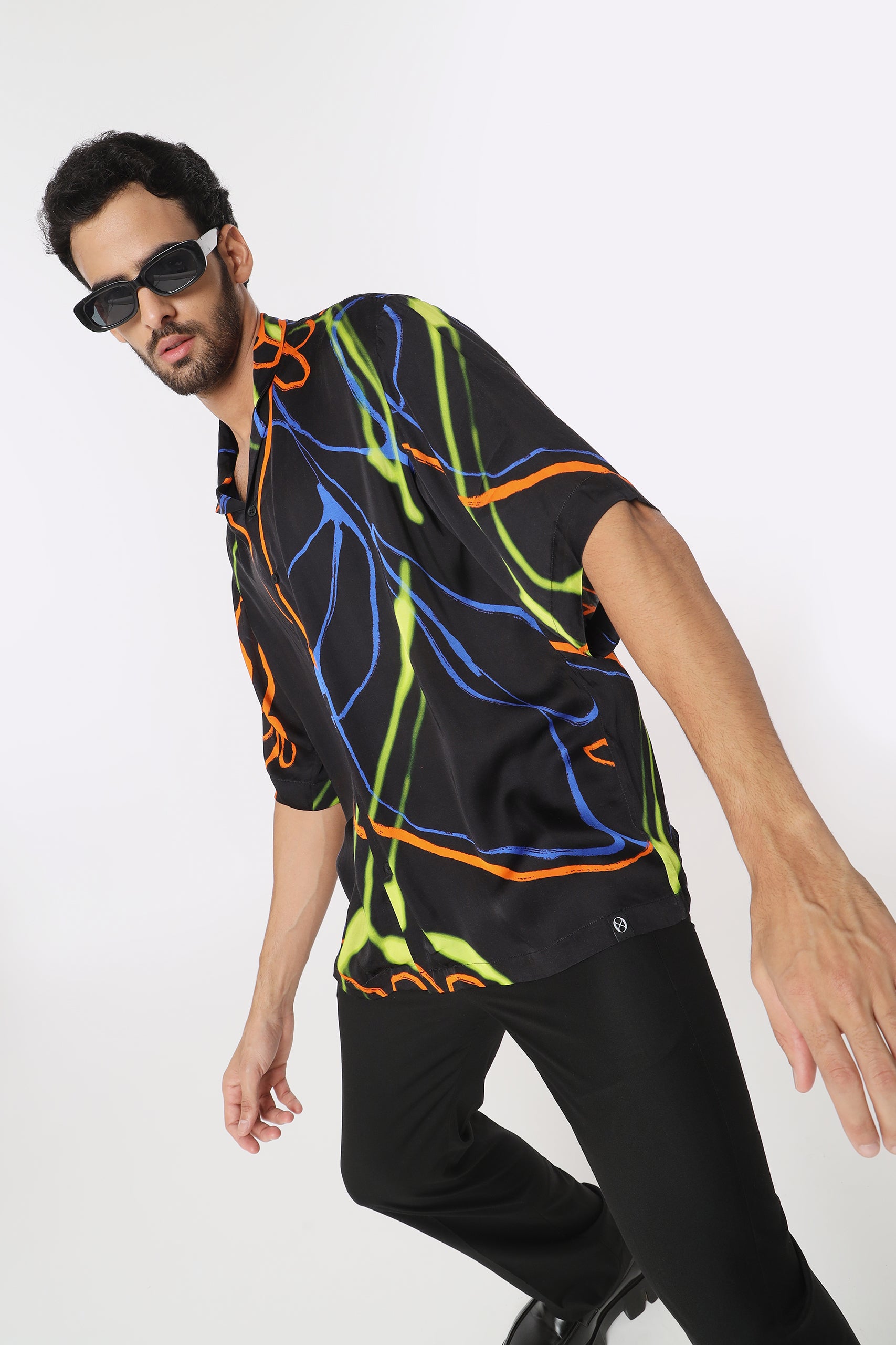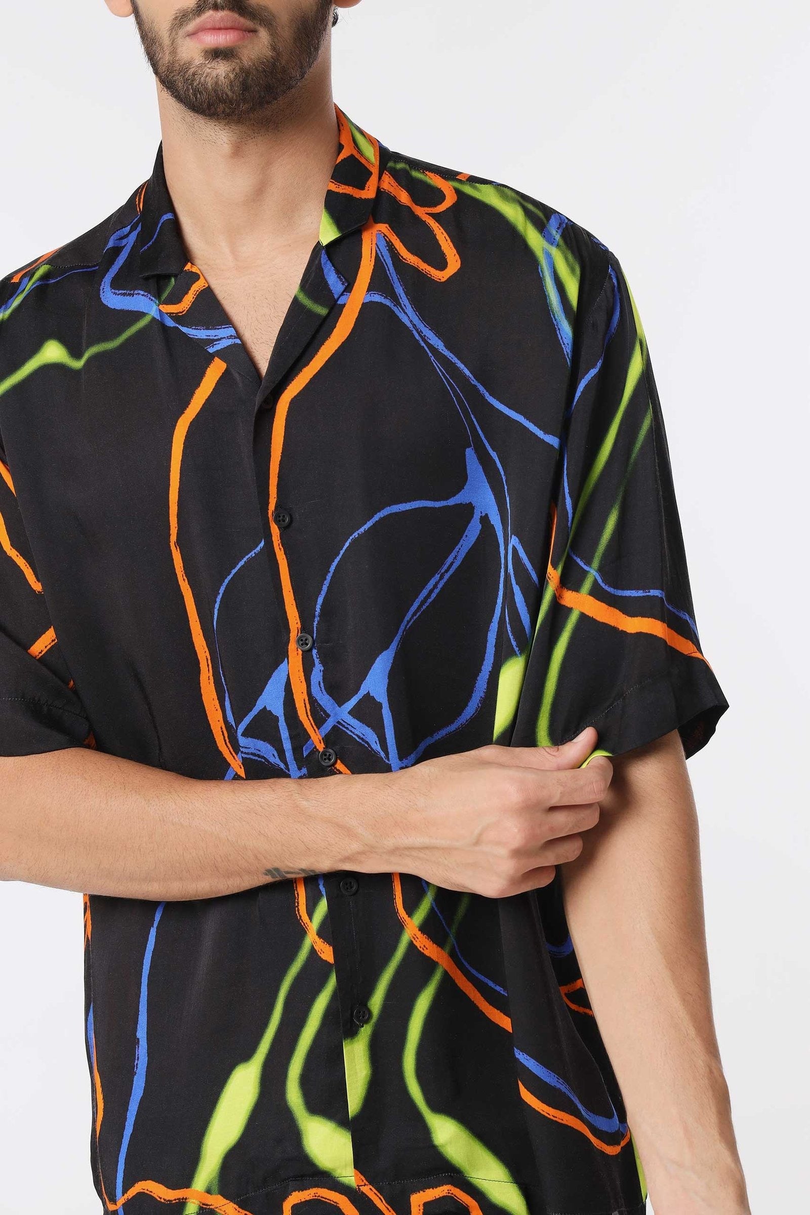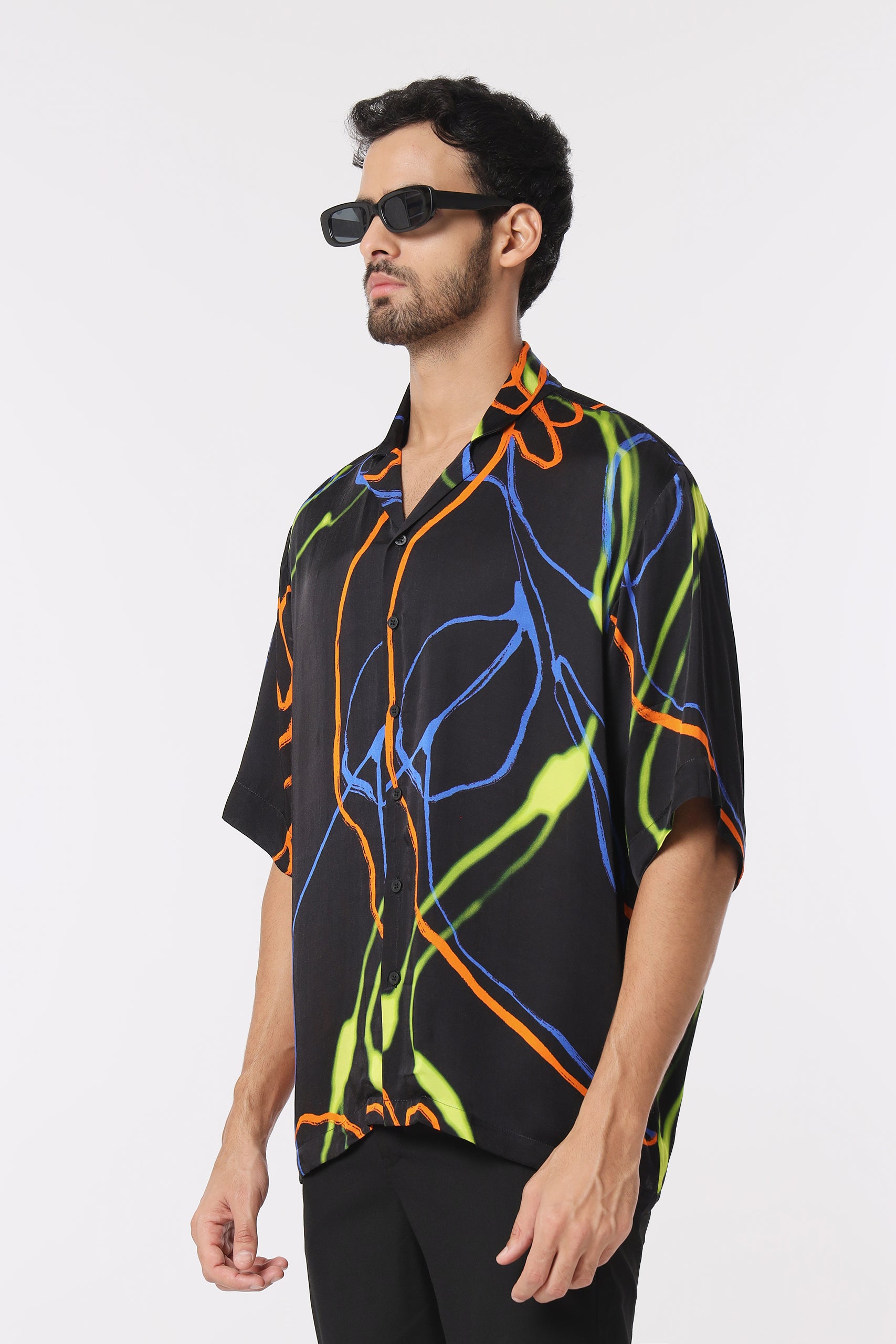 A graphical printed shirt on Modal satin fabric with a luxurious feel comes with subtle sheen, and the relaxed fit would ensure comfort while maintaining a stylish look.