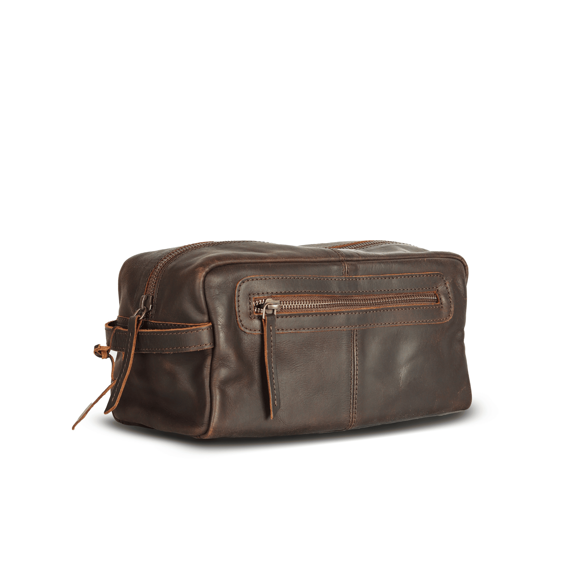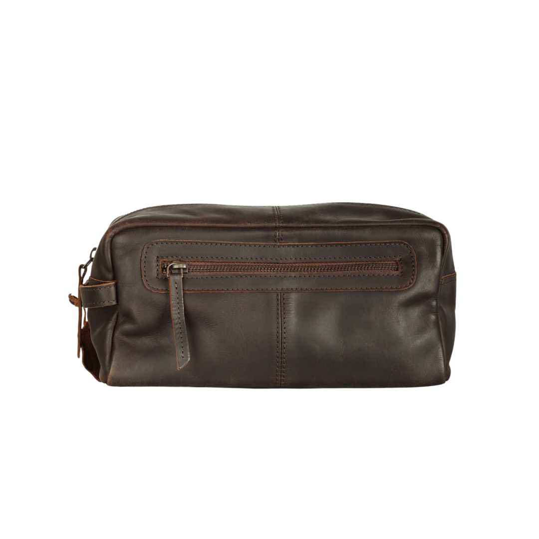 Introducing our premium toiletry bag, expertly crafted from full-grain leather for a touch of sophistication and durability. This sleek and practical bag features a spacious main zipper compartment to house your grooming essentials securely.