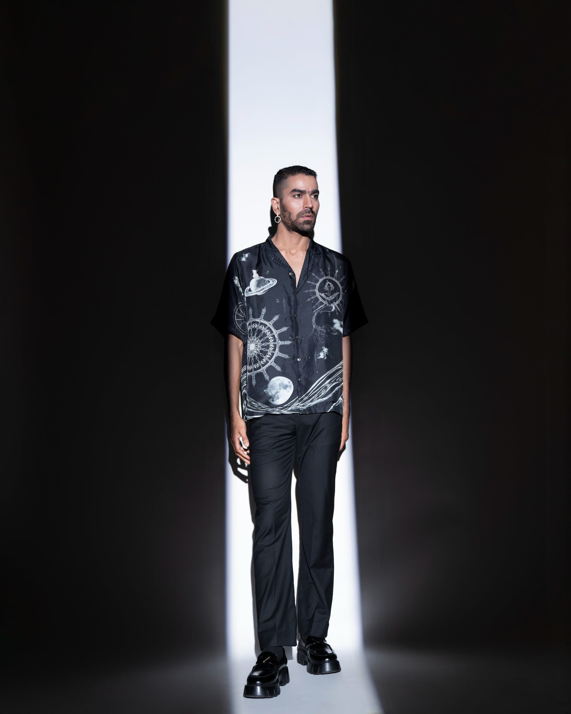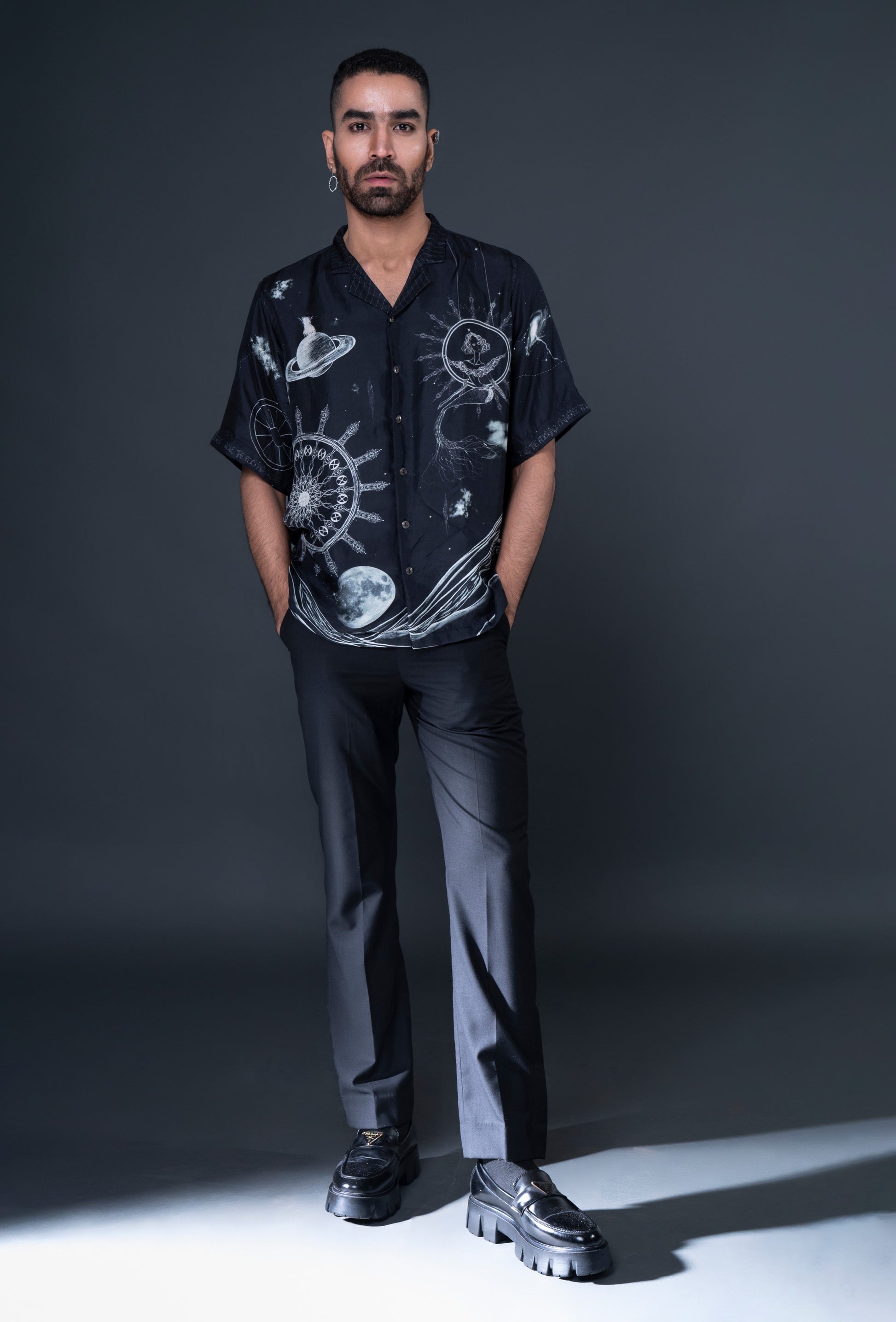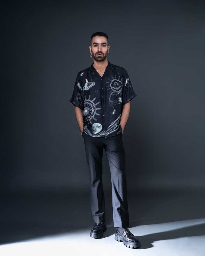 Conquering the universe might be a bit ambitious, don’t you think? How about ruling your own little corner of it instead? A Digitally printed shirt on 100% Silk fabric comes with a relaxed fit.