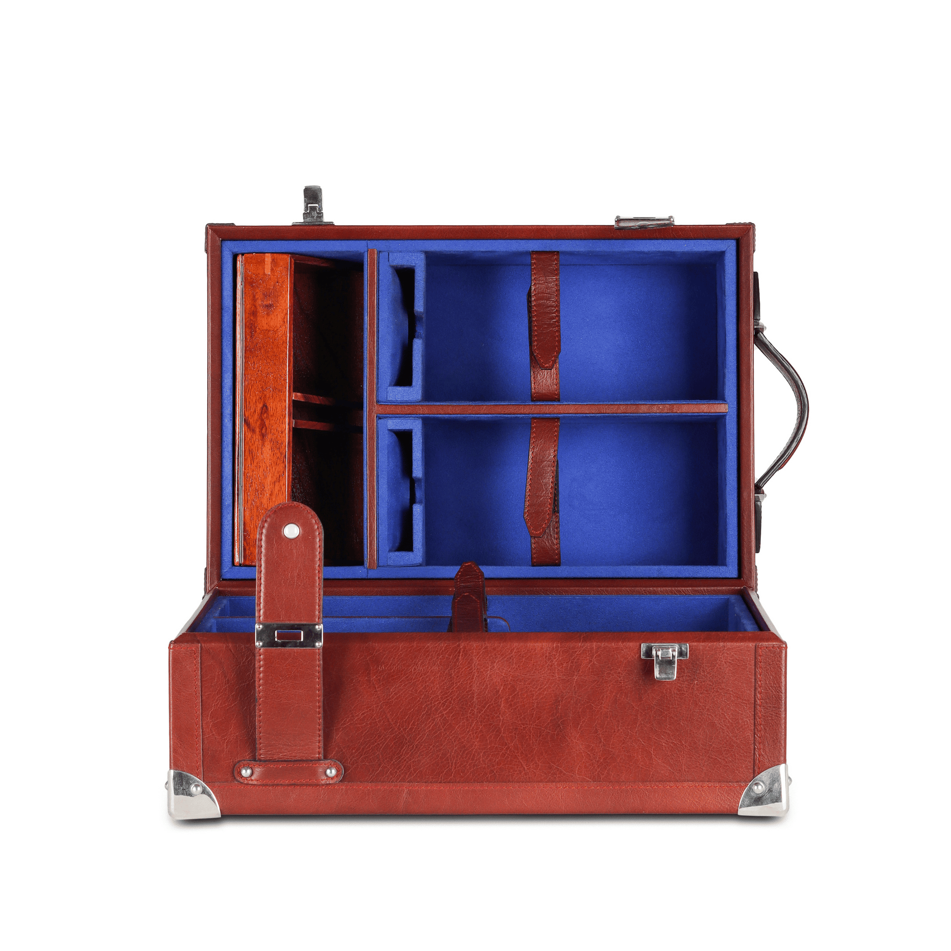 - Fitted with a leather handle with a metal lock