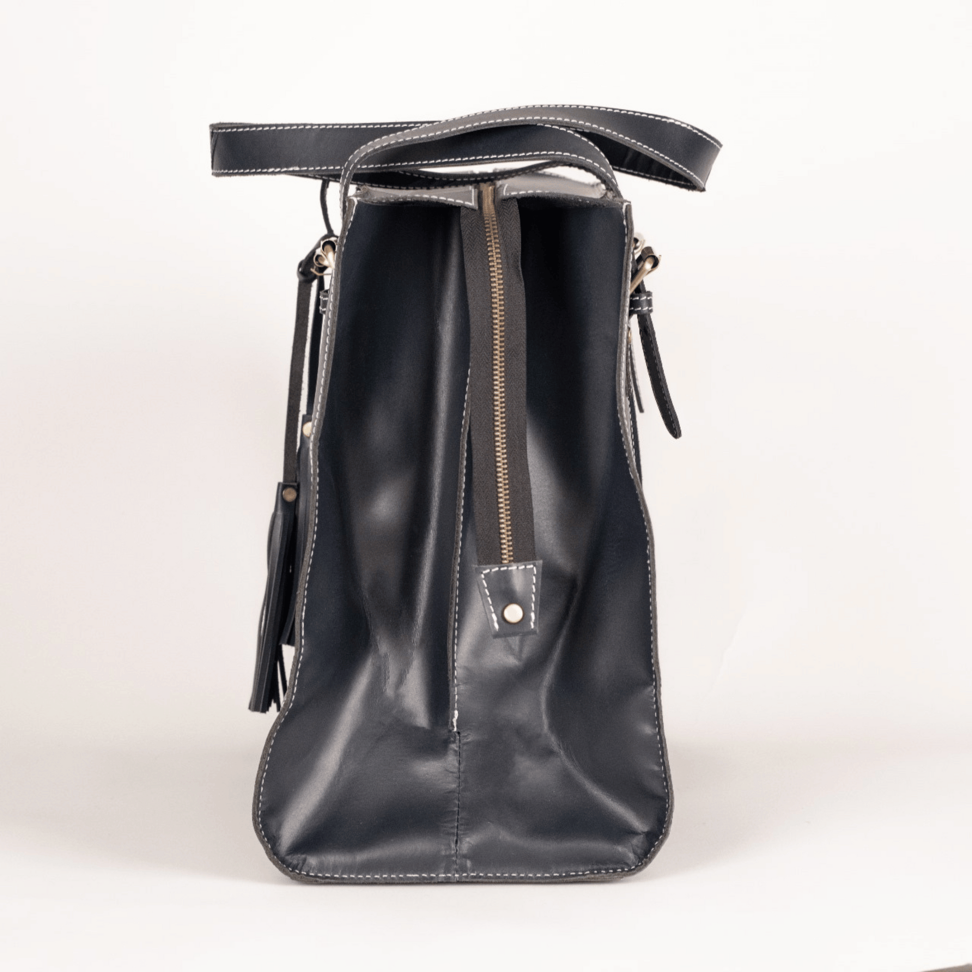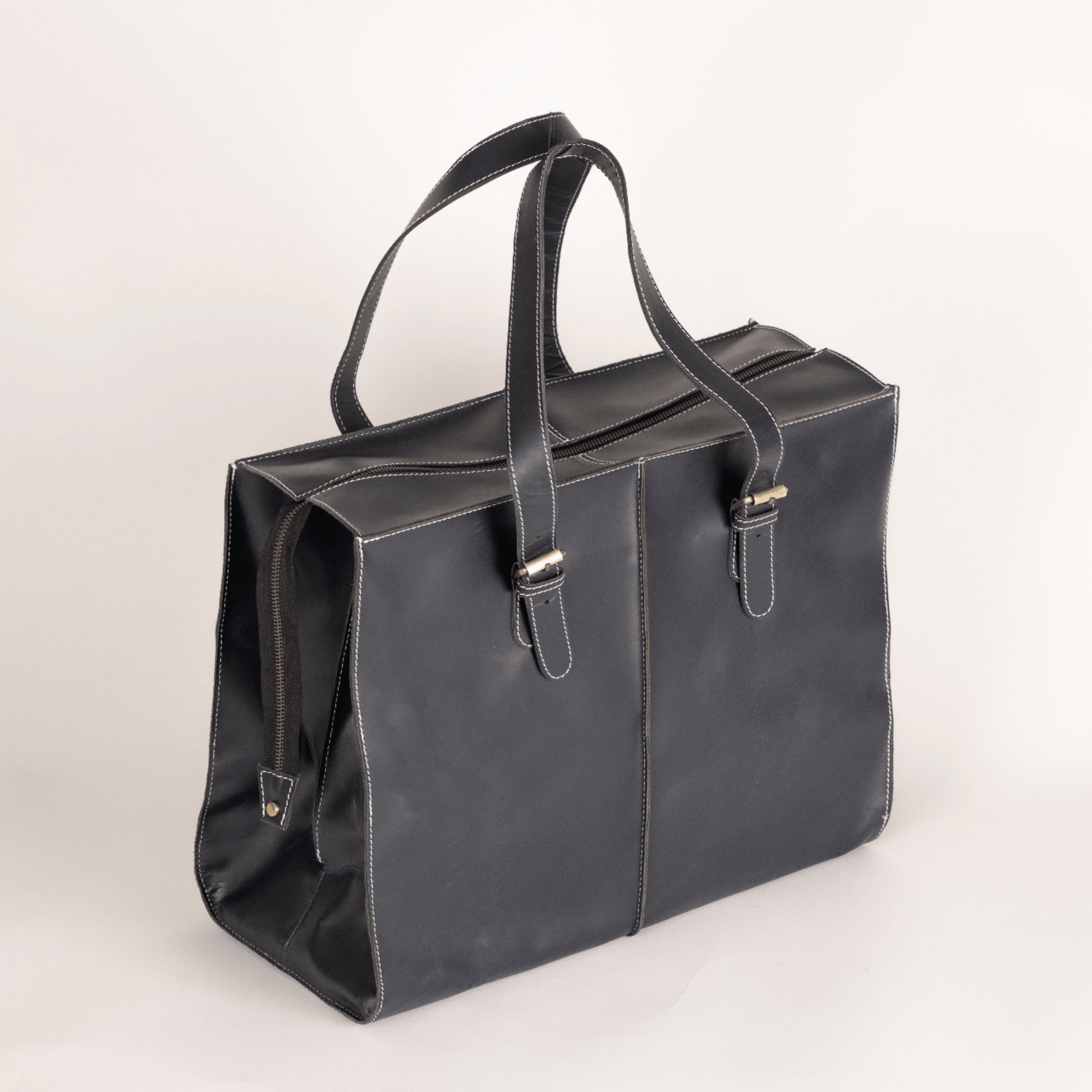 The ultimate companion for every woman, our all-carry tote bag is crafted from luxurious full grain leather, accentuated by antique brass buttons and exposed white stitching that add a timeless elegance to its rich texture.