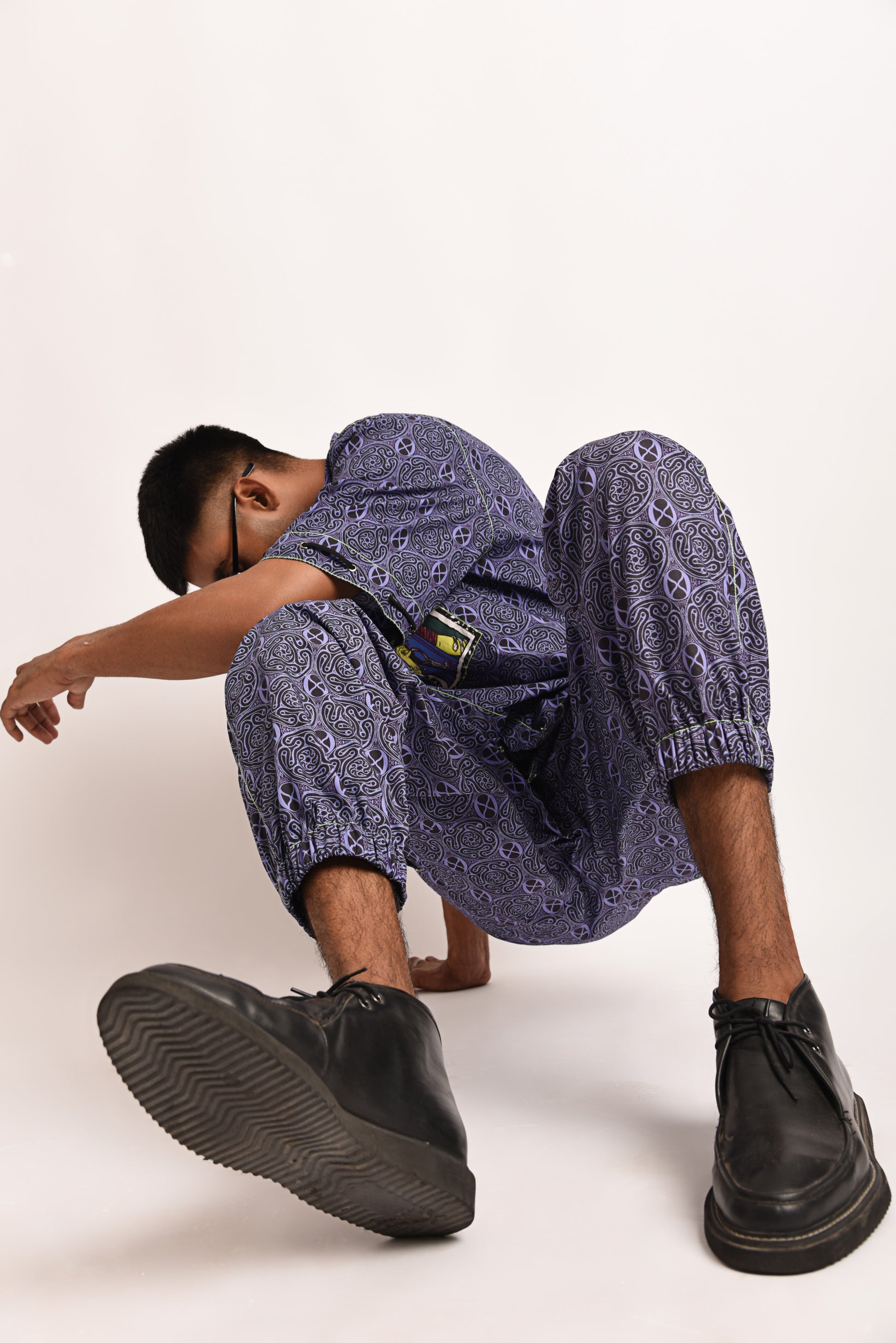 Trivia Shorts: Digitally printed on 100% cotton fabric featuring trivia print, with the iconic fluorescent green stitching.