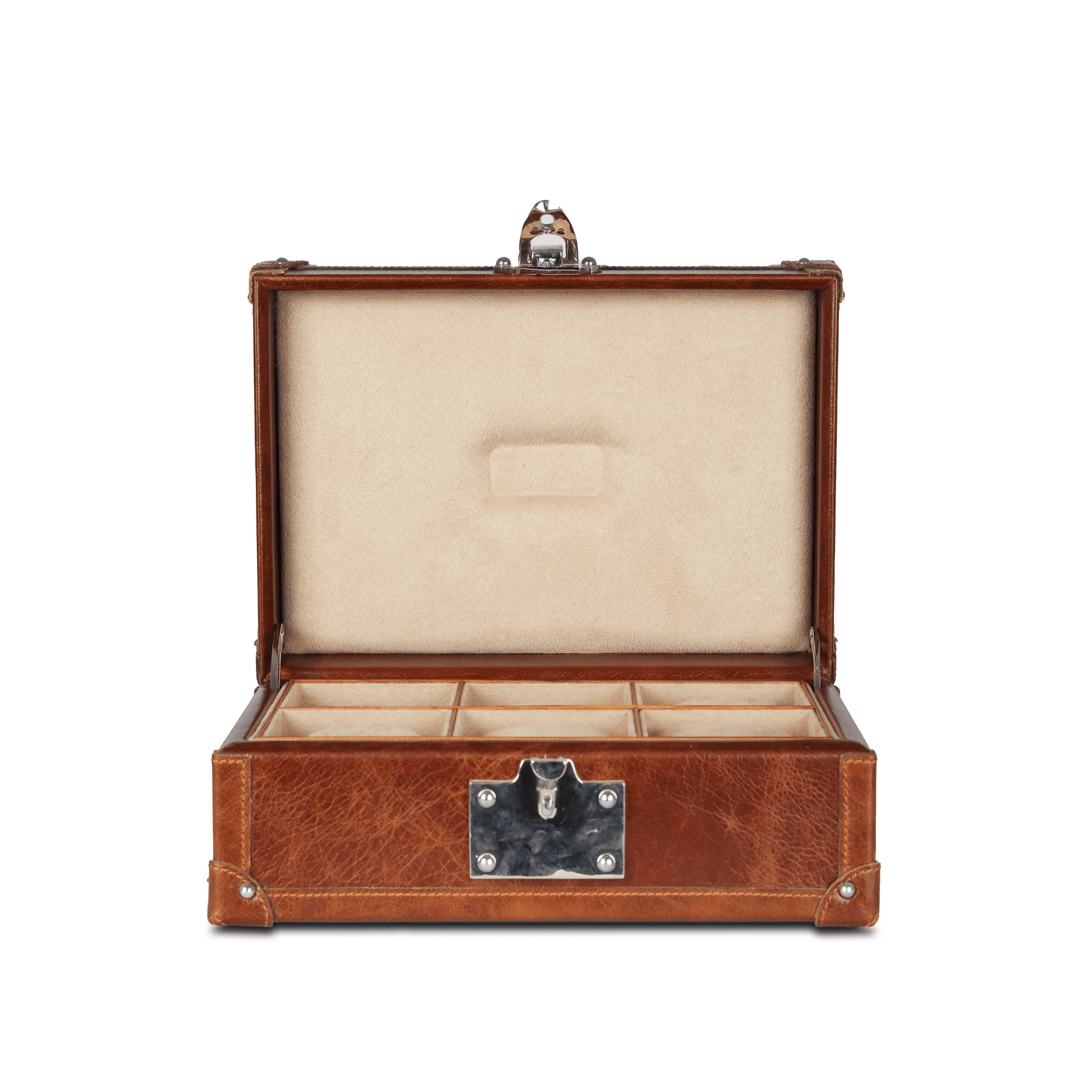 - DIMENSIONS: The exterior of our glass display box with lock measures 13 1/2 inches long, 8 1/4 inches wide, and 3 7/8 inches high with a weight of 4.5 pounds. The pillow circumference is 7 1/4 inches and compressible to 6 3/4 inches. If your watch is sized to be smaller than 6 3/4 inches you can leave the clasp open to fit.
