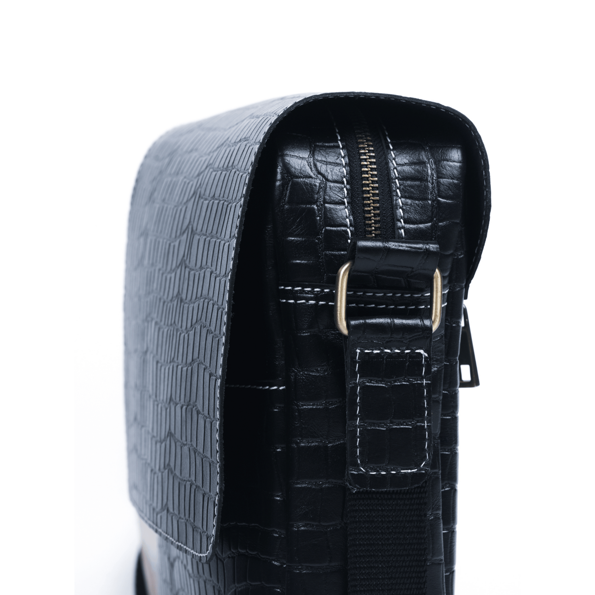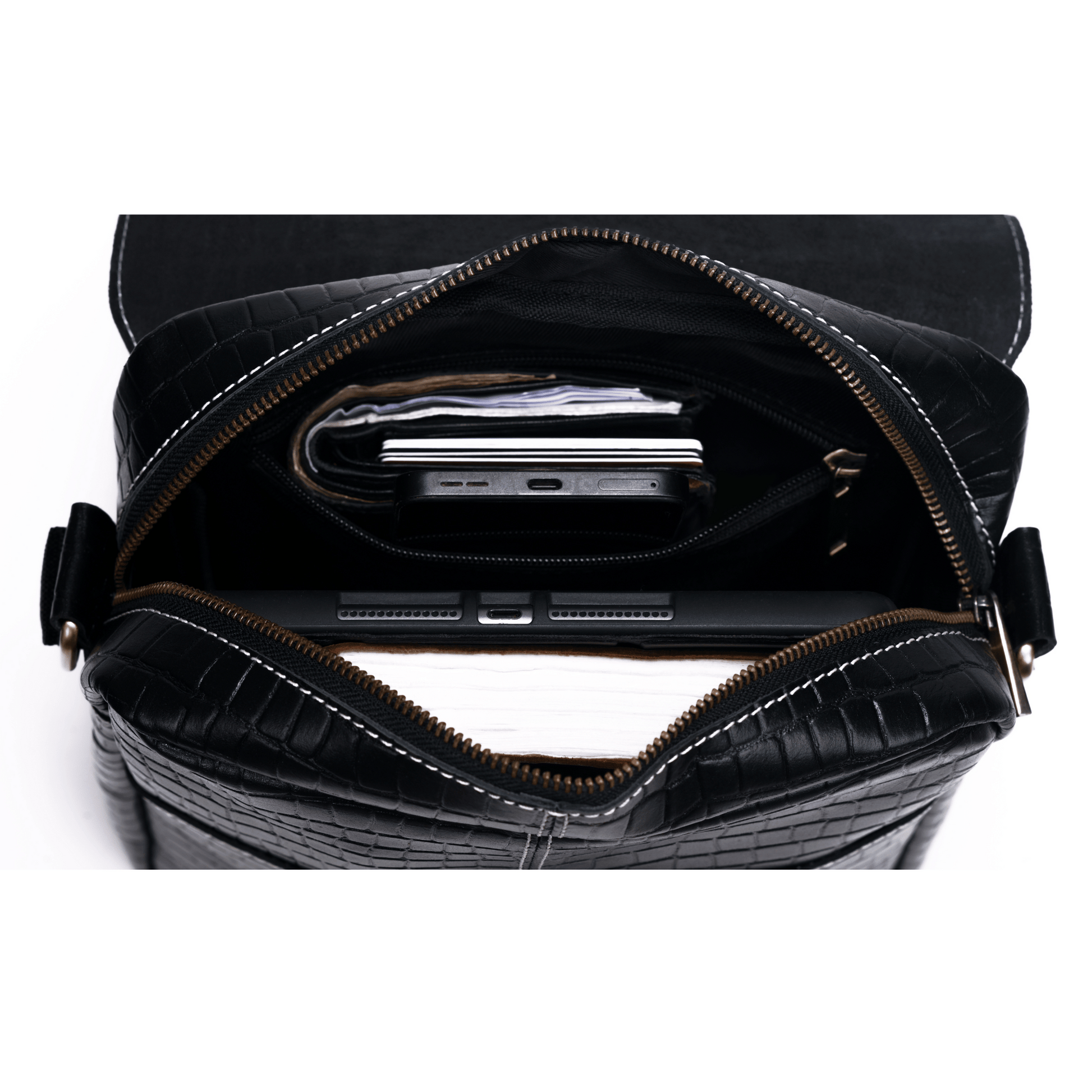 Zipper crossover Genuine Leather Cross Body Bag Ebony Black